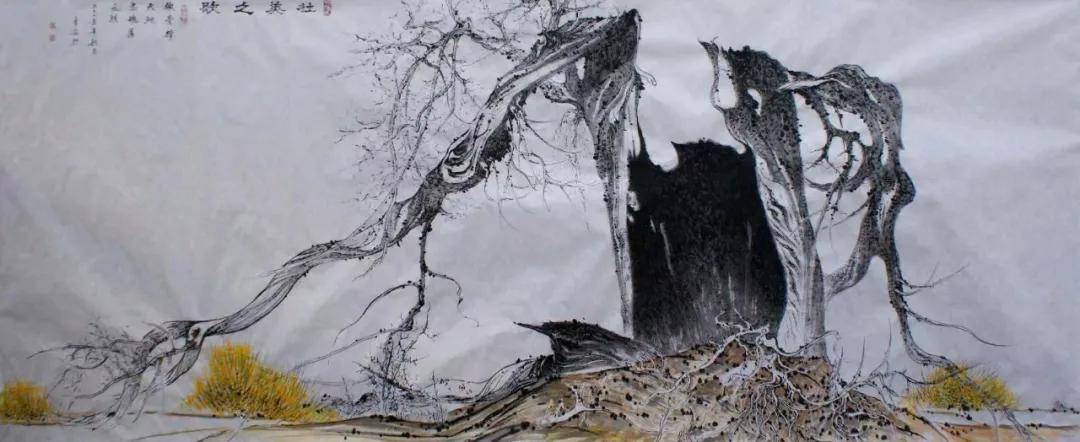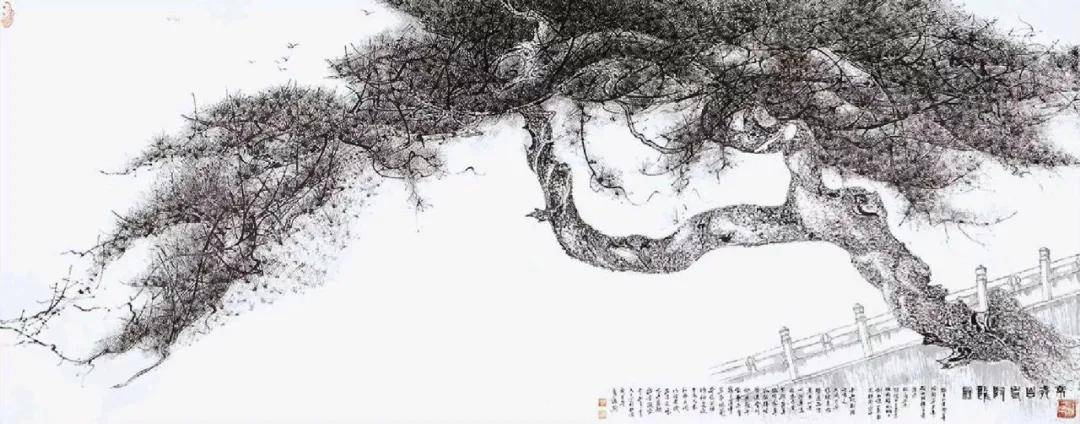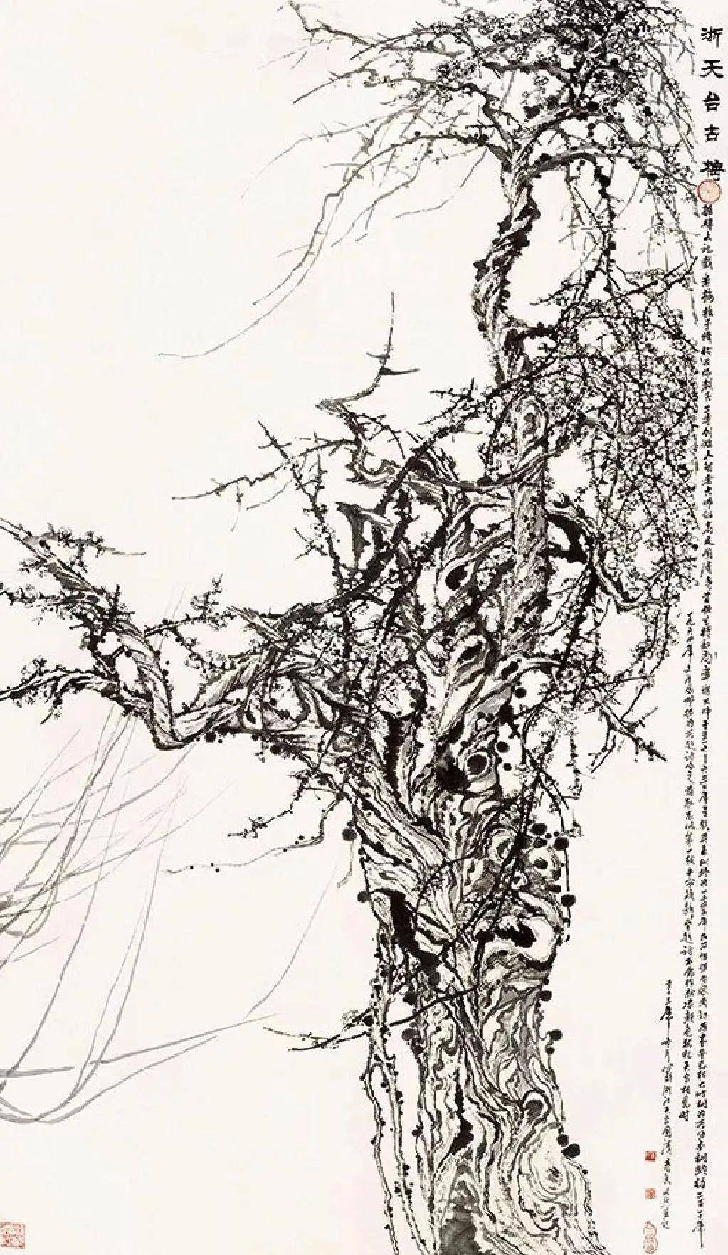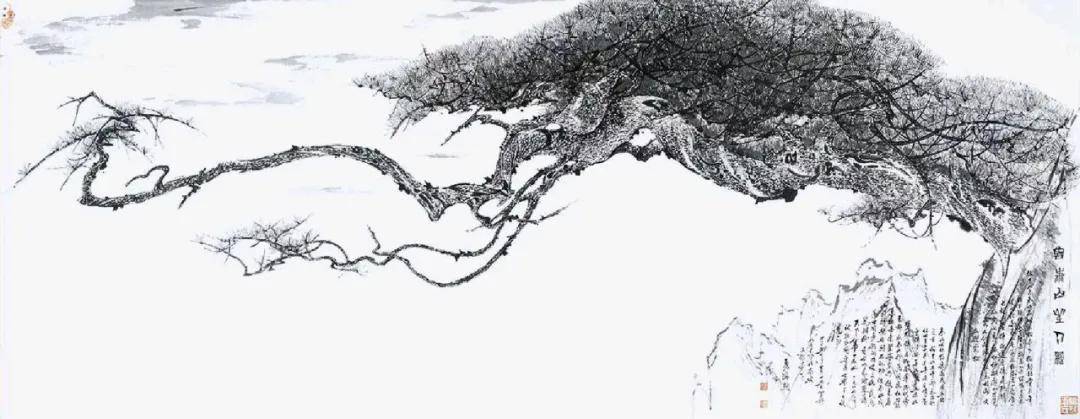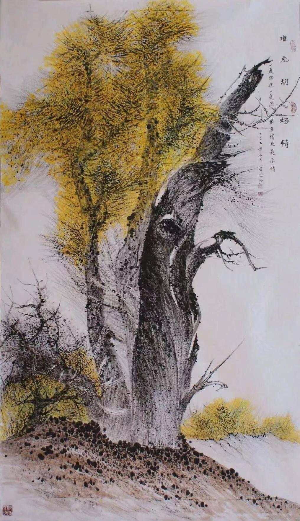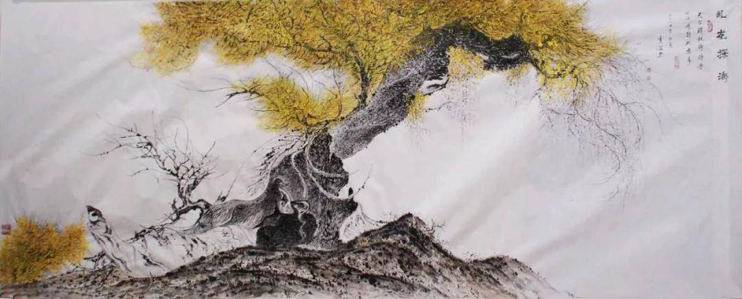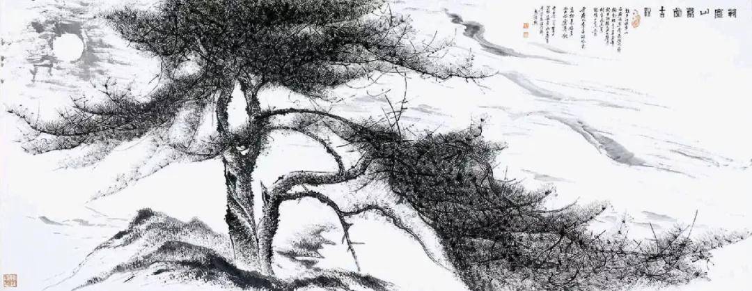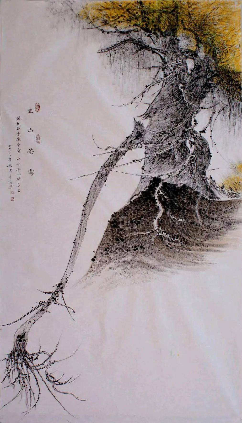 先生师先贤、法自然,坚持走新古典主义之路,以高古、古意、古雅为美学追求。崇尚大美术、大境界,20年餐风沐雨,行程10万余里,考察中华大地名梅、名松、名山、胡杨,并以此为蓝本,创作出“四大系列名作”中华名梅、名松、名山、胡杨系列巨制各56幅,约7800平尺。堪称“前无古人”。填补了用传统笔墨全面系统描绘中华名梅、名松、名山、胡杨的空白。作品充满了大气与傲骨,线条苍劲灵动,意境深邃,格调高雅,具有鲜明而独特的个人风貌,受到中外收藏家的青睐。