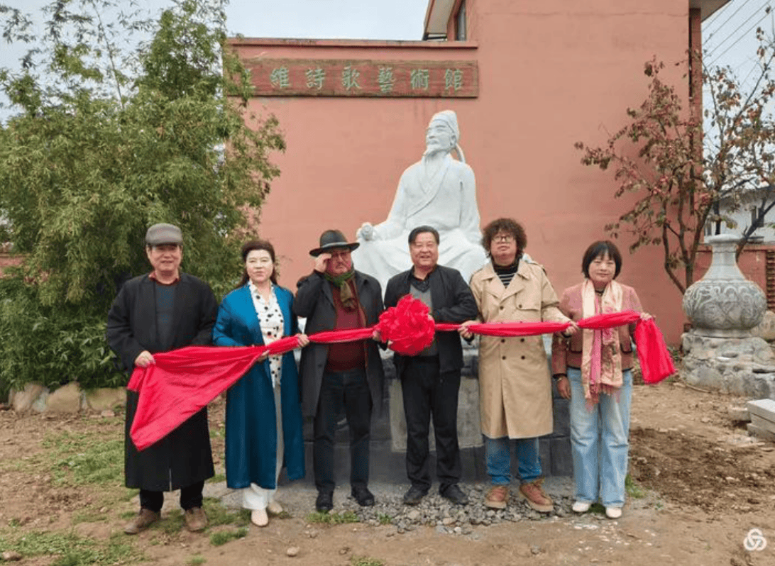 随后驱车来到长安区曹村,这里曾是王维在终南山长达四年的隐居地,王维艺术馆馆长王渊平主任早己和一大群诗人在馆门前迎接。中哈诗人參观了艺术馆,王渊平向大家介绍了唐诗之路手绘地图,在终南山下长安区遗存有86处,每处遗址在地图上都有详细标注。唐诗之络从长安向全国辐射形成米字型构架。王芳闻向王维艺术馆赠送了诗集和杂志。