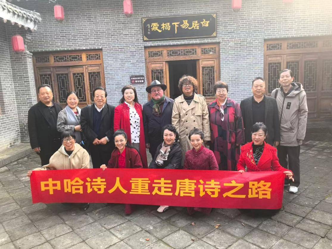 中哈诗人一行还游览了唐代诗人白居易留吟的仙娥驿和棣花驿,仙娥驿枕在仙娥峰上的皎洁的秋月和山下荷塘畔瓦檐上的人造大月亮让中哈诗人喜之不禁,抱着大月亮留下了醉人的合影。在白居易三次经过商於古道留宿的棣花驿,诗人们留恋忘返于白居易下榻居室,凝视着大诗人的画像,那句〝板桥霜凝月,茅店鸡声鸣”不禁轻声从唇边飞出……今夕,何夕?恍惚中大家仿佛穿越那个诗歌的黄金巅峰时代。