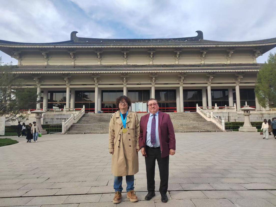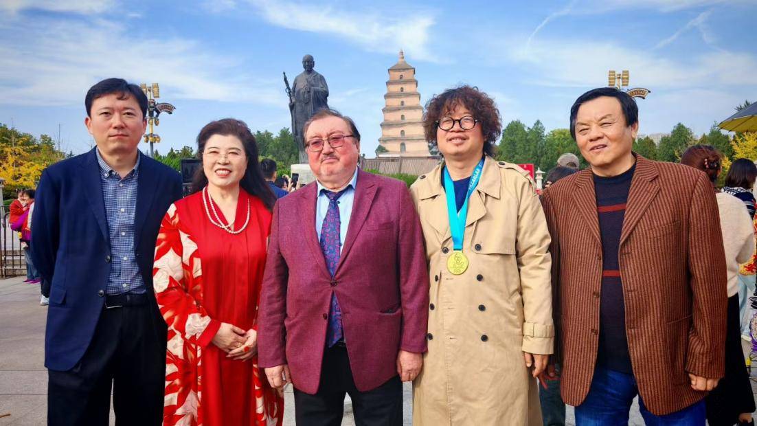 中国和哈萨克斯坦是山水相连的友好邻邦。在国家领导人和托卡耶夫总统的战略引领下,在当前我们陕西正处在立足国家向西开放的重要战略的“窗口”期,携手落实好一中国中亚峰会成果,多渠道畅通人文和经贸交流的大好背景下,西安“唐诗之都”迎来中哈诗人——“重走唐诗之路”的文化友好交流的盛会,于11月1日上午,由丝绸之路国际诗人联合会主办,在丝路地标大雁塔以西的东方大酒店举办了一场隆重的“中哈诗人重走唐诗之路诗歌分享交流会”,拉开了中哈诗人重走西安唐诗之路交流采风活动的序幕。会上,乌鲁格贝克.耶斯道勒特主席向王芳闻颁发了“哈萨克斯坦-哈基姆.阿拜诗歌奖金奖”,这个奖以哈萨克斯坦最著名的诗人“哈基姆.阿拜命名,旨在褒奖对世界诗歌做出杰出贡献的国际诗人。他在会上宣读了颁奖词,曹谁先生做了翻译。乌鲁格贝克主席在颁奖词中高度称赞:王芳闻主席,是丝绸之路的诗歌女王,她的诗来自几个世纪的深处,她的灵魂由柔美的丝绸制作,她的心由月亮和太阳的光构成!