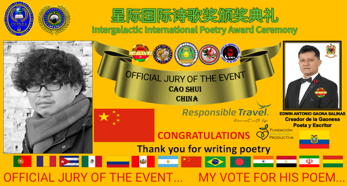 曹谁以星际诗人组织中国大使身份,跟乌鲁克贝格等嘉宾一起,为获得历届星际诗人组织奖的获奖者颁奖。第4届星际诗人组织国际儿童诗歌奖十佳华语作品奖:王芳闻、曹波;第5届星际诗人组织国际工人诗歌奖:范群;第6届星际诗人组织国际父爱诗歌奖十佳诗人奖:韩智平,入围奖:穆海峰;第7届星际诗人组织国际反战诗歌奖十佳诗人奖:董发亮,十佳新锐奖:一叶红尘、穆海峰;第8届星际诗人组织国际和平诗歌奖十佳新锐奖:一叶红尘,入围奖:韩智平、穆海峰;第9届星际诗人组织国际自由诗歌奖十佳诗人奖:王芳闻、韩智平,十佳新锐奖:海霞。