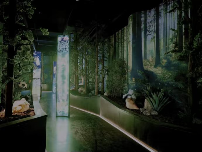 声光电沉浸式体验区:运用激光投影、环幕剧场等技术,打造了如“萤舞飞花”、“万物共生”等主题光影空间,营造出身临其境的虚拟生态场景。