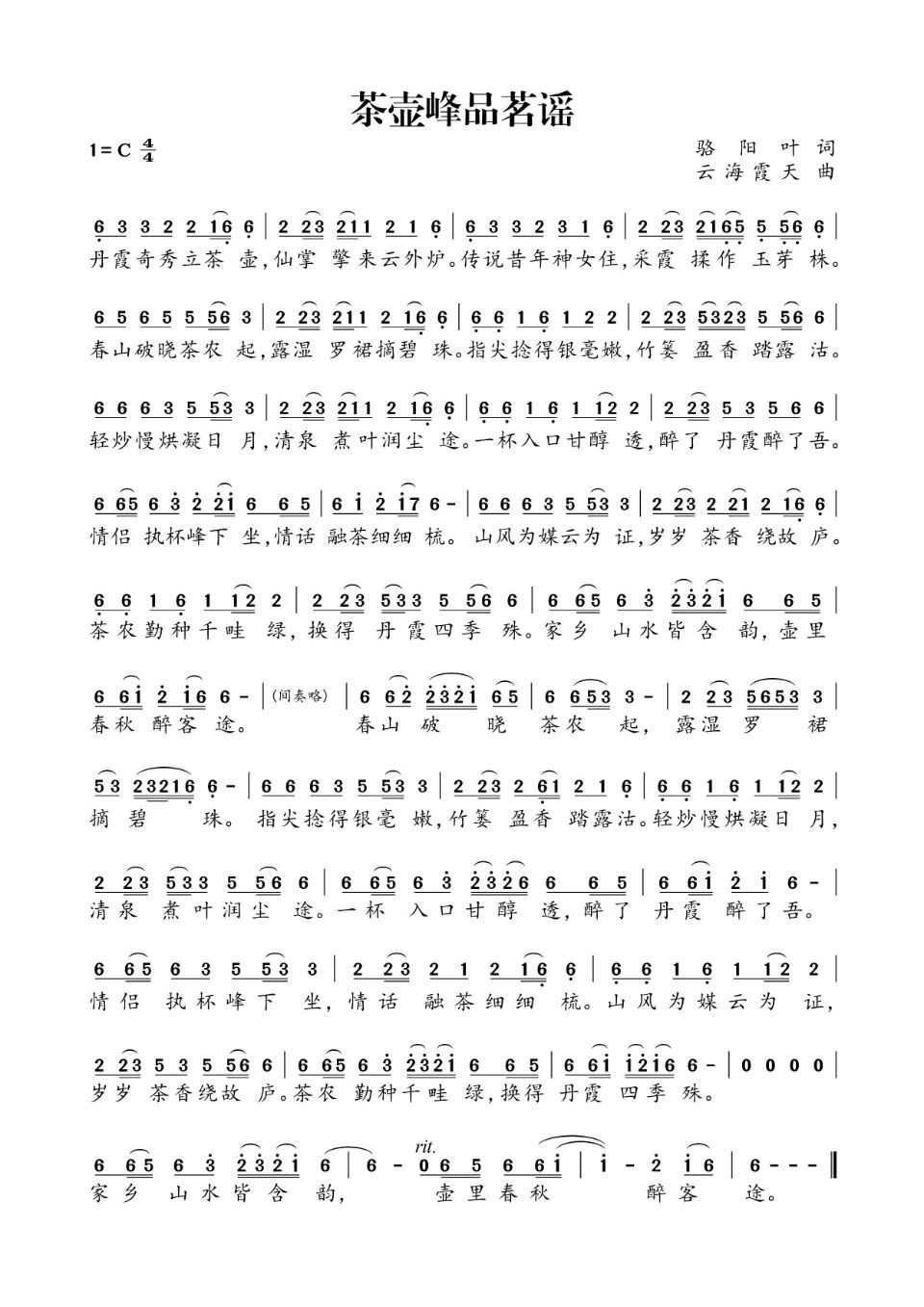 骆阳叶先生以书画家的眼光捕捉丹霞之形,以诗人的笔触抒发故乡之情,让《茶壶峰下品茗谣》既有“形”的生动,又有“神”的深邃。诗歌中的每一句都如笔墨点染,既有实景的描摹,又有情感的升华,将丹霞山的奇秀、丹霞茶的甘醇与故乡情的深厚完美融合,读来如品佳茗,甘醇满口,余味无穷,更让人读懂了一位游子对故土最深沉的眷恋与礼赞。骆阳叶不愧为国家一级社团,中国通俗文艺研究会文学与书画类的双料会员,他的作品具有视觉上的冲击力,又有听觉上的感染力,是一首值得传播的好作品。