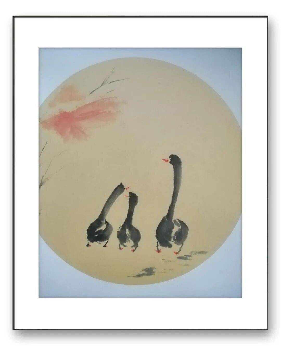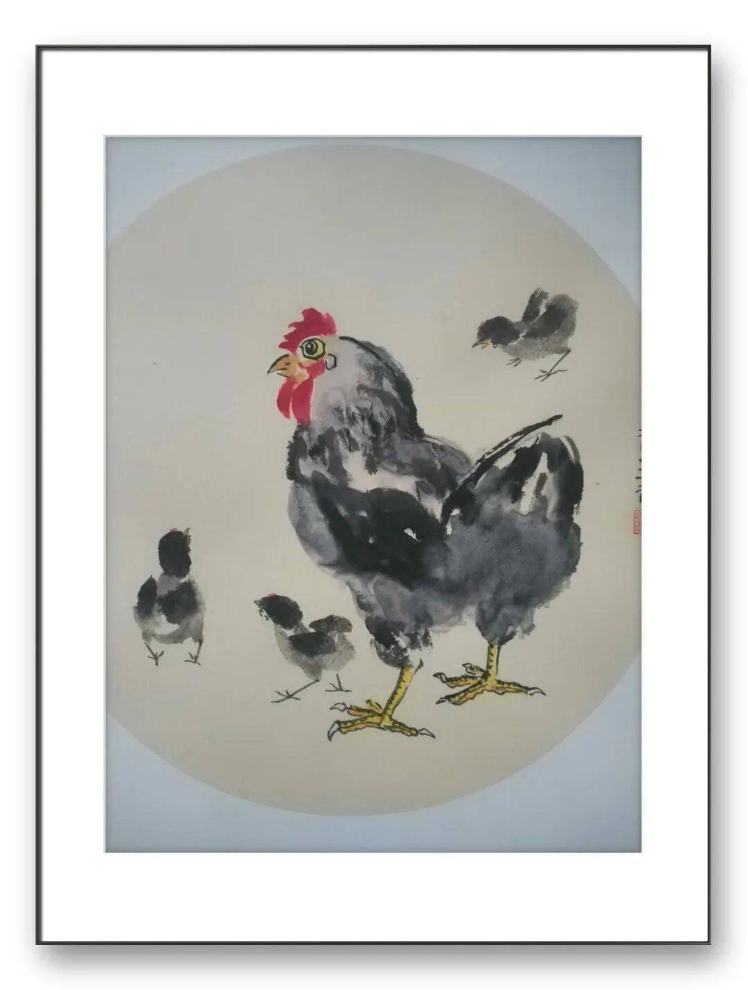 于宏强先生通过寥寥数笔,便将鸡的形态和神韵表现得淋漓尽致。公鸡的尾巴长而飘逸,翅膀有力,眼神锐利,展现出一种威武雄壮的形象。而母鸡则更加温婉,线条柔和,神态亲切,让人感受到一种温暖的氛围。