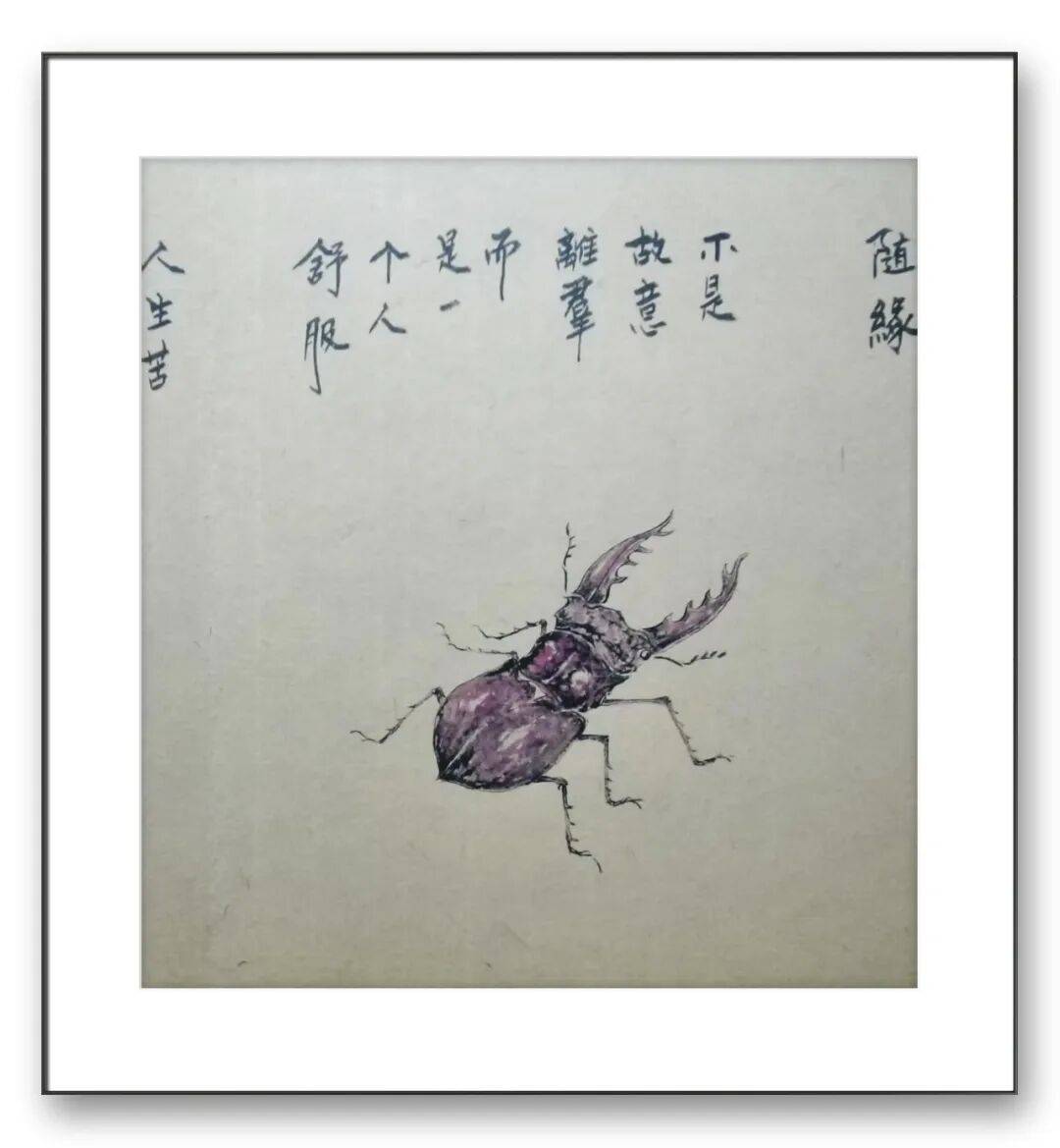 意境营造是中国书画艺术的最高追求,于宏强先生的草虫书画,在意境营造上独具匠心,充满了诗意与哲思。他的作品不仅展现了自然生灵的外在之美,更传递出一种对自然、对生命的深刻感悟,营造出宁静致远、清新淡雅的艺术意境。在他的画面中,草虫不再是孤立的个体,而是与自然环境融为一体,相互映衬,相得益彰。他常常以简洁的背景衬托主体,通过留白的手法,给观者留下广阔的想象空间。