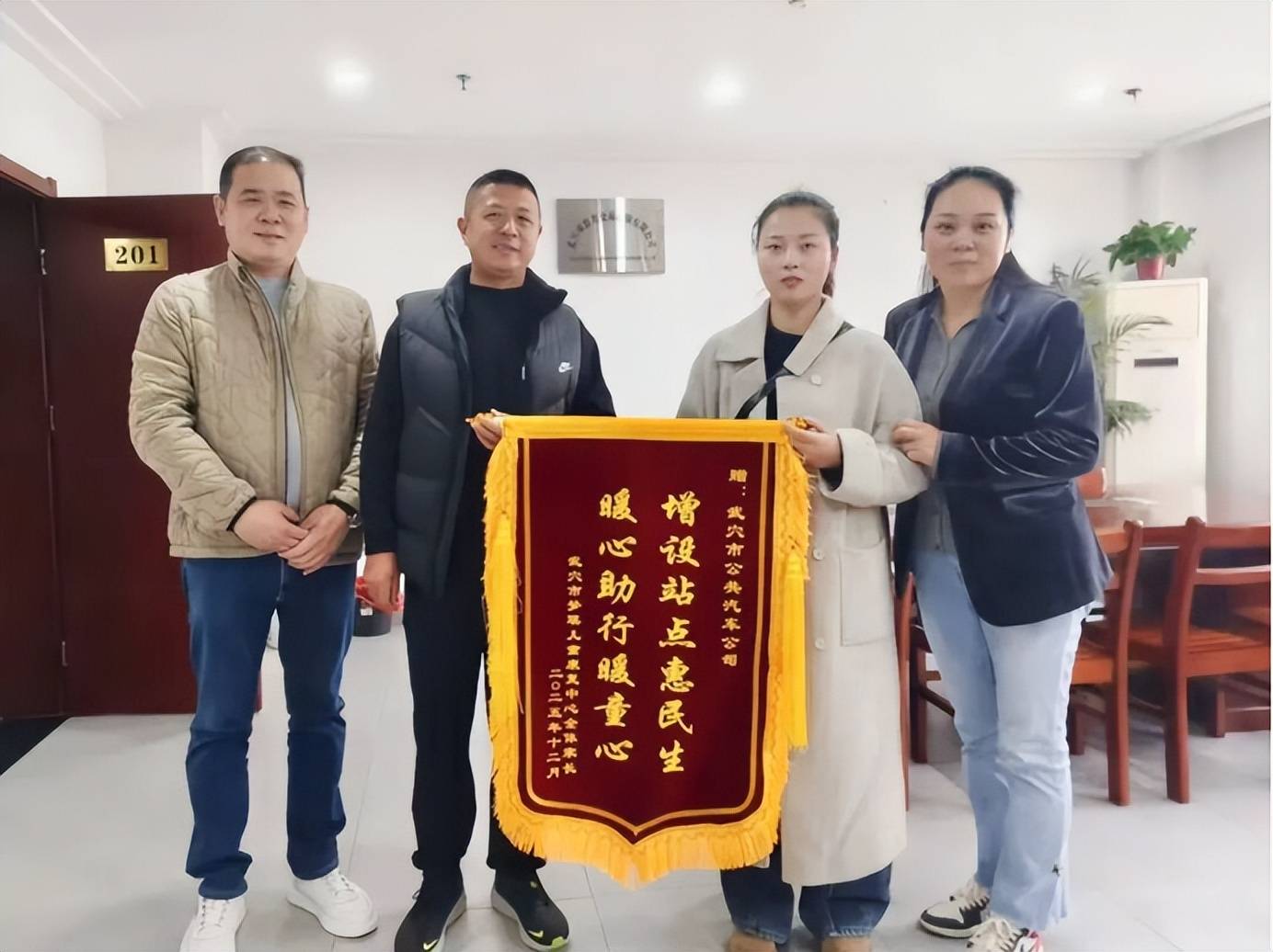 《民生中国报道》湖北武穴讯(田树兵 邱笑雪 扬 振)12月10日上午,武穴市公汽公司收到了一份承载着深厚情谊的礼物。武穴市梦琪儿童康复中心将两面鲜红的锦旗送到公司,上面书写着:“爱心助行促康复、公交担当暖童心”、“增设站点惠民生,暖心助行暖童心”。锦旗背后,是一段关于理解、行动与温暖的民生故事。