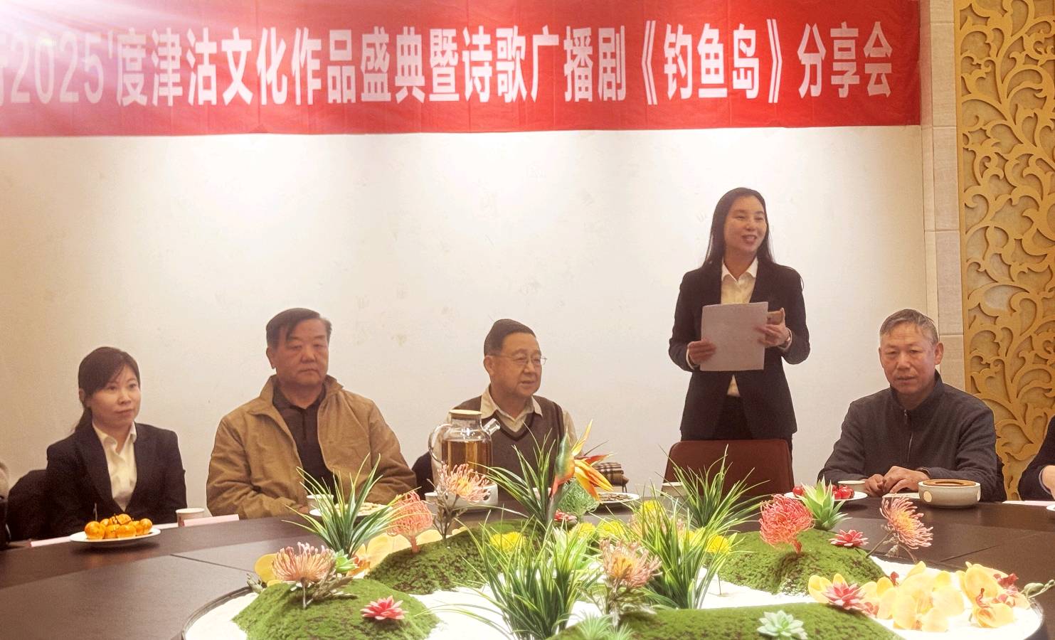为宣传贯彻党的二十届四中全会精神,创作出更多贴近百姓生活、增强人民精神力量的优秀作品,为弘扬中华民族文化和“津沽文化”贡献力量,2025年12月9日上午十点,由北京银行天津河北支行主办的“京行2025年度津沽文化作品盛典暨诗歌广播剧《钓鱼岛》分享会”在惠宾饭庄隆重举行,对2025年的文化活动进行了总结。河北区作家协会名誉主席张秋铧、河北区作协副主席殷秀玲、刘炜、刘颖和来自河北区、河东区、静海区作协的五十余位作家、艺术家及特约嘉宾参加活动。获悉活动的著名作家李治邦、市作协诗歌委员会主任陈丽伟、和平区文联副主席朱春生、河北区作协主席邵衡宁对盛典活动表示祝贺。