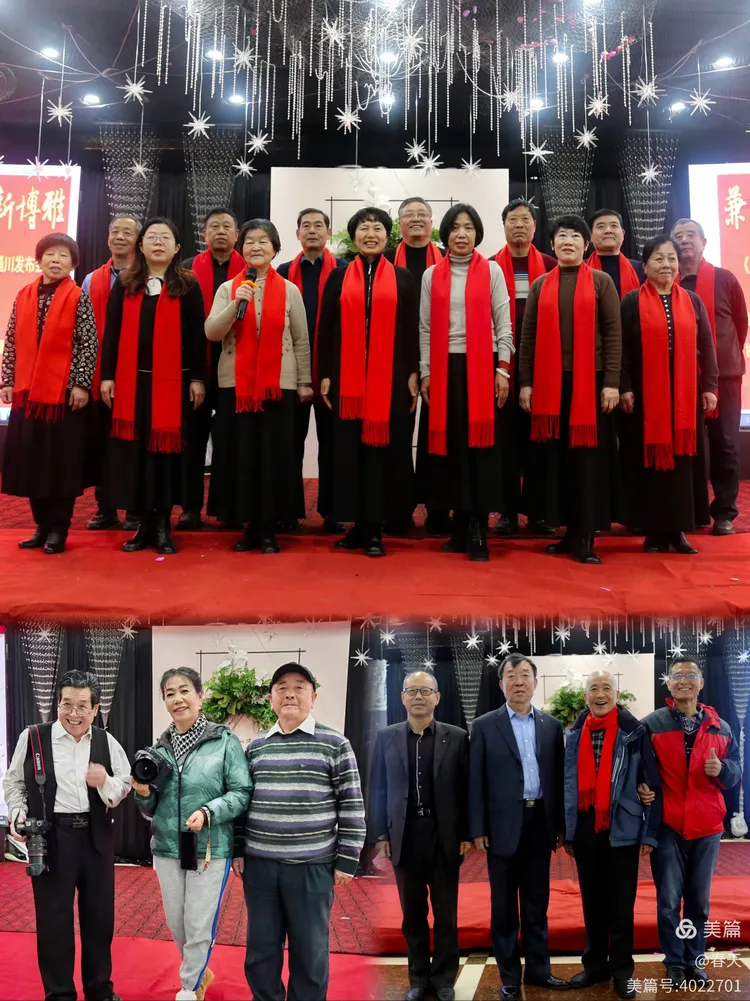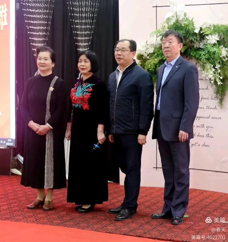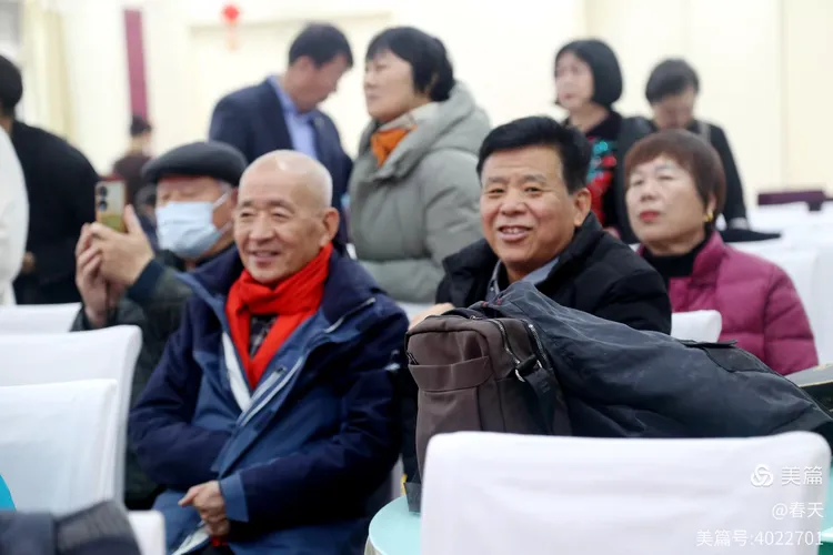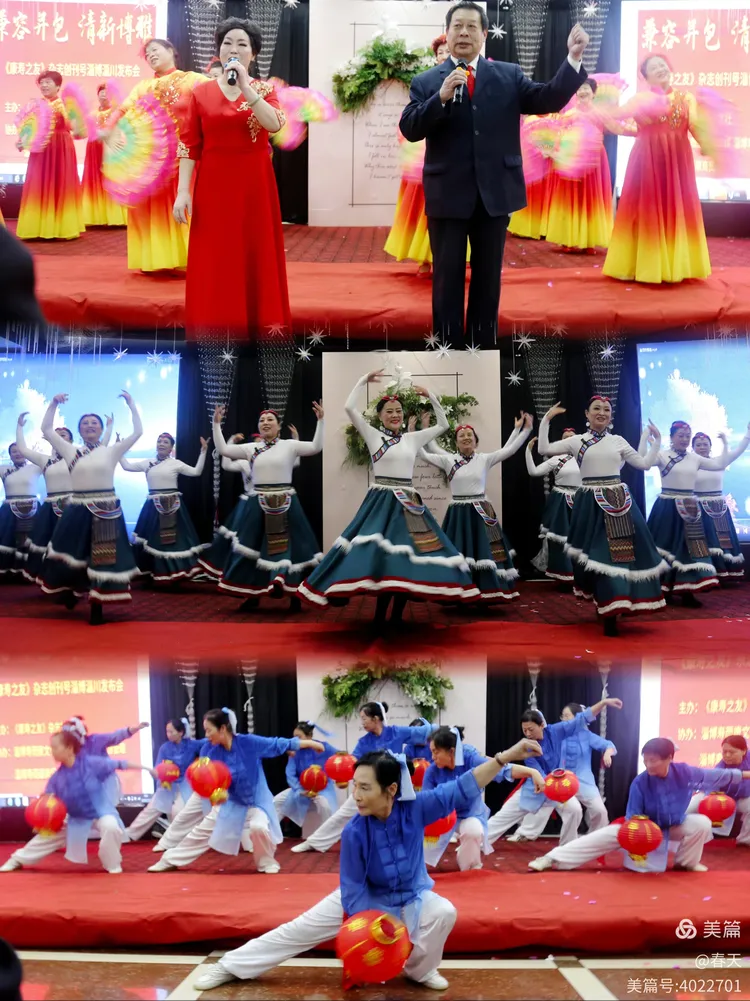 文艺演出环节更是精彩纷呈,高潮迭起。京剧唱段字正腔圆,余音绕梁;歌曲演唱深情款款,直抵人心;太极扇舞动静结合,刚柔并济;健美舞韵,舞姿翩跹,彩蝶纷飞,红梅报春;更有诗词吟诵,声情并茂,古韵悠长。台上台下,欢声笑语,其乐融融,最后众嘉宾移步台前,合影留念,定格下这历史性的一刻。