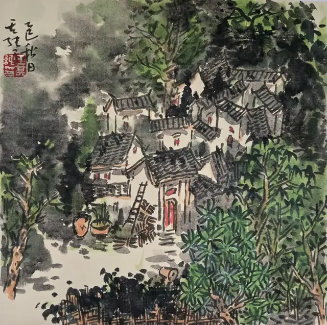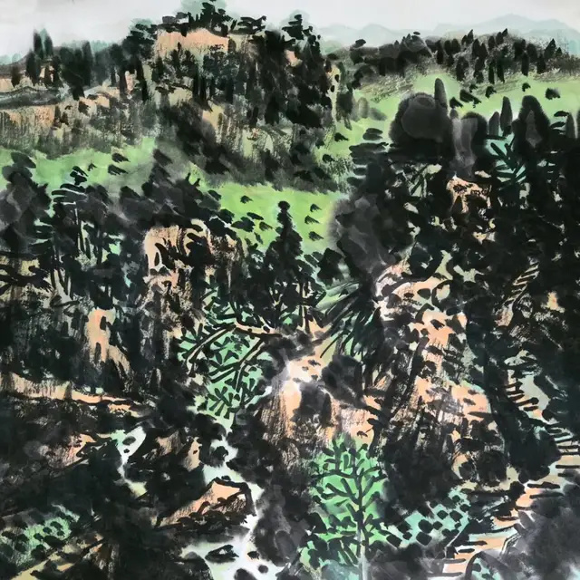 他多次深入皖南、东北、太行山等地写生,将自然景观转化为“心象山水”。在导师卢禹舜的影响下,他打破传统程式,探索个人艺术语言,例如在青绿与水墨技法上的融合,以及对元四家、明吴门画派的借鉴。