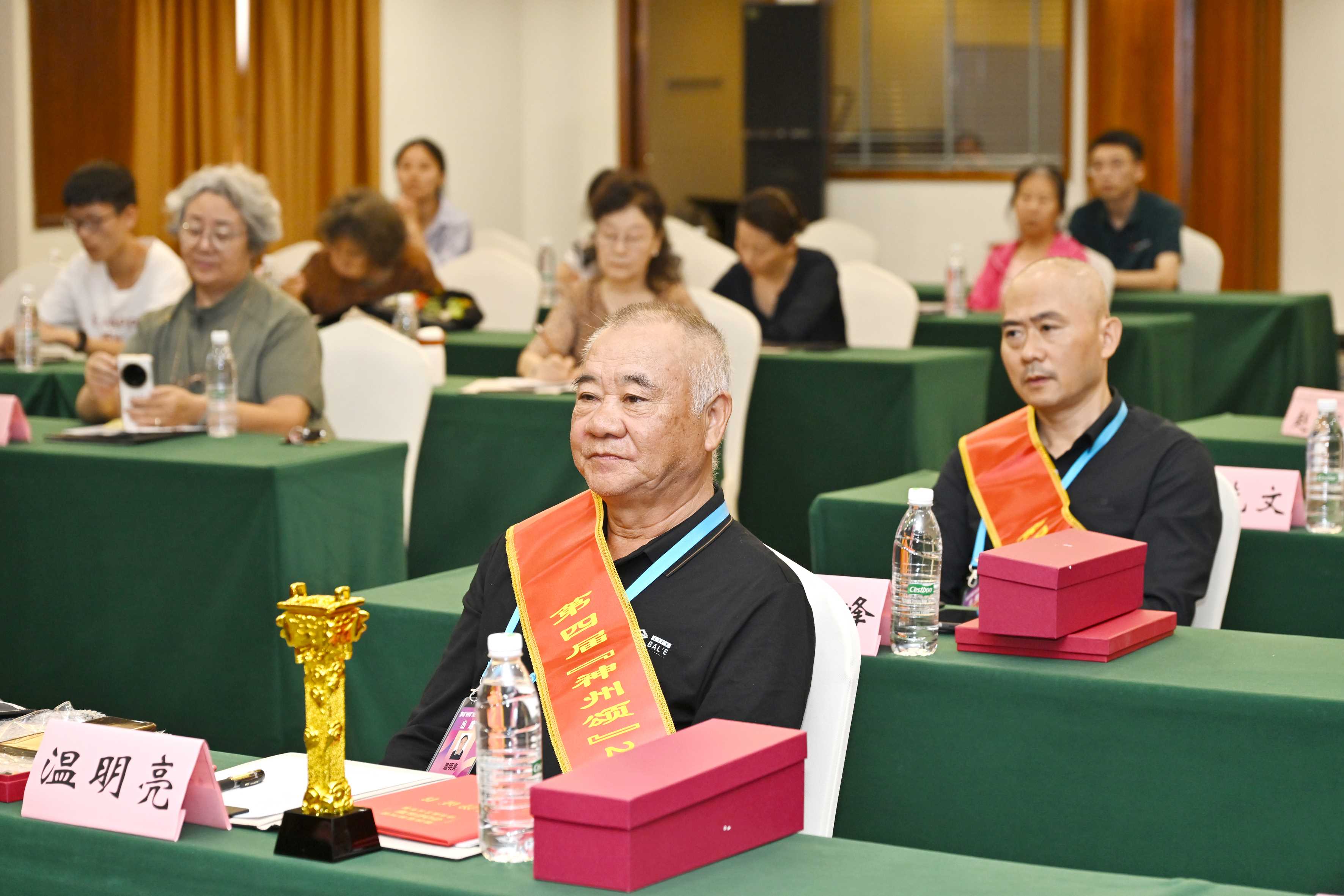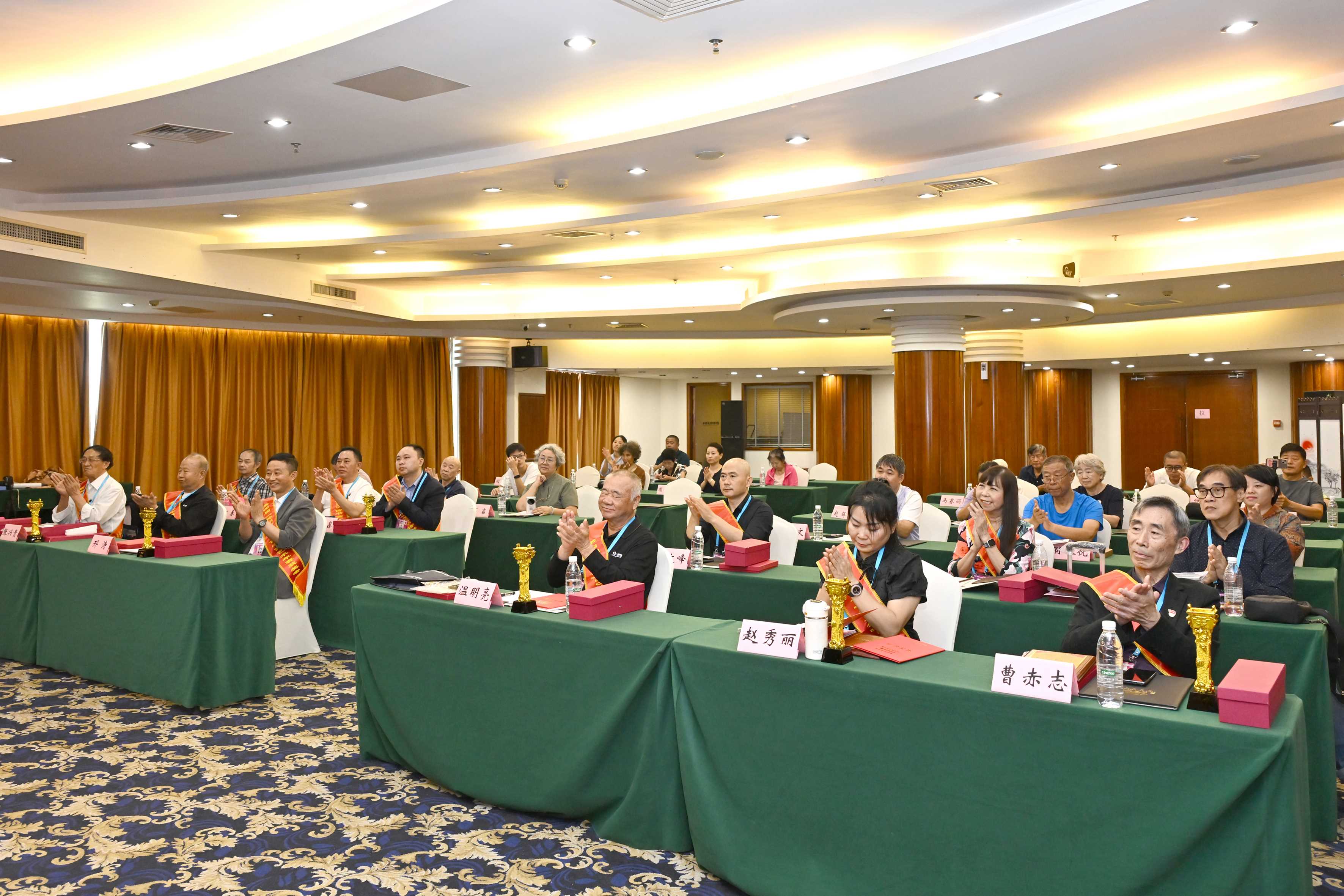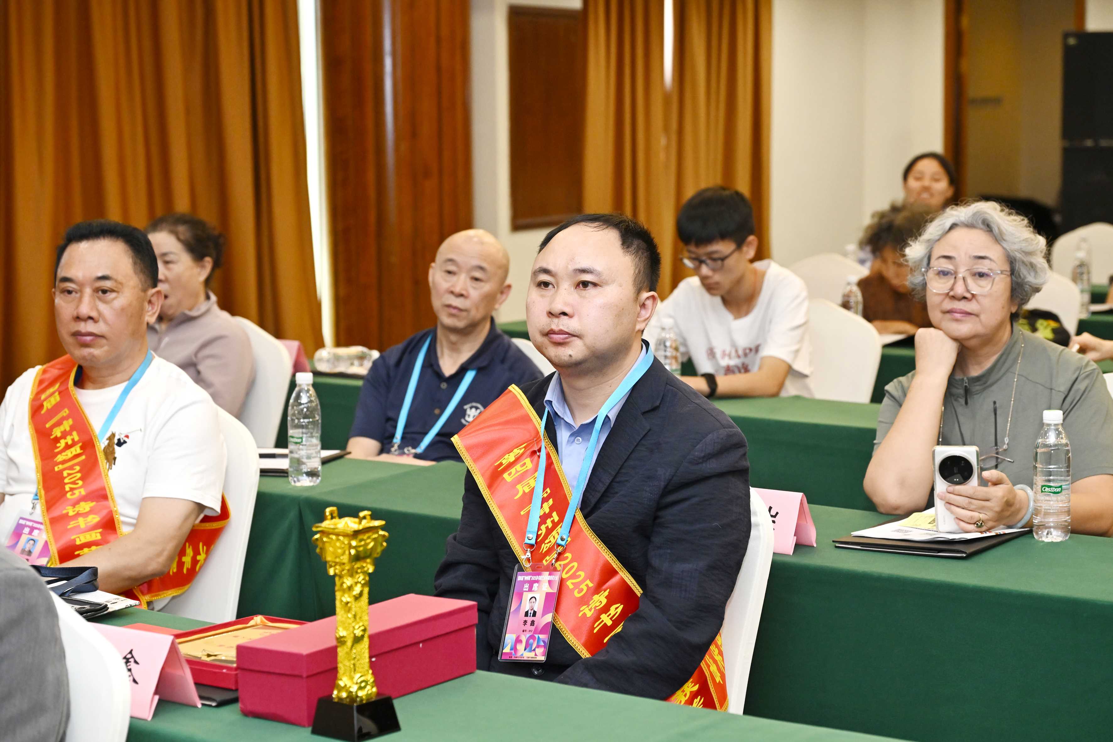 在欢快的乐曲声中,获奖者一一上台领奖,与会领导专家为他们颁发了荣誉奖牌。李冰、李景新、方礼刚、李梦霞等在致辞中对大会的召开、对年赛获奖者表示热烈的祝贺,希望获奖者以此次颁奖为契机,以诗书画为舟,以创新为楫,继续笔健墨香、再创佳绩!新加坡的陆彩屏、吉林省的邢涛代表获奖者上台发言:感谢本届“神州颂”艺术年赛,为我们诗书画家提供了一个极其宝贵、开放、包容的交流平台。让我们借此文化交流平台,将艺术的丝线,编织更多友谊与合作的纽带。祝愿我们共同热爱的艺术事业,如同璀璨星河,永远闪耀着联结大家心灵的光芒!会后,与会领导专家为参会代表签名并合影留念。