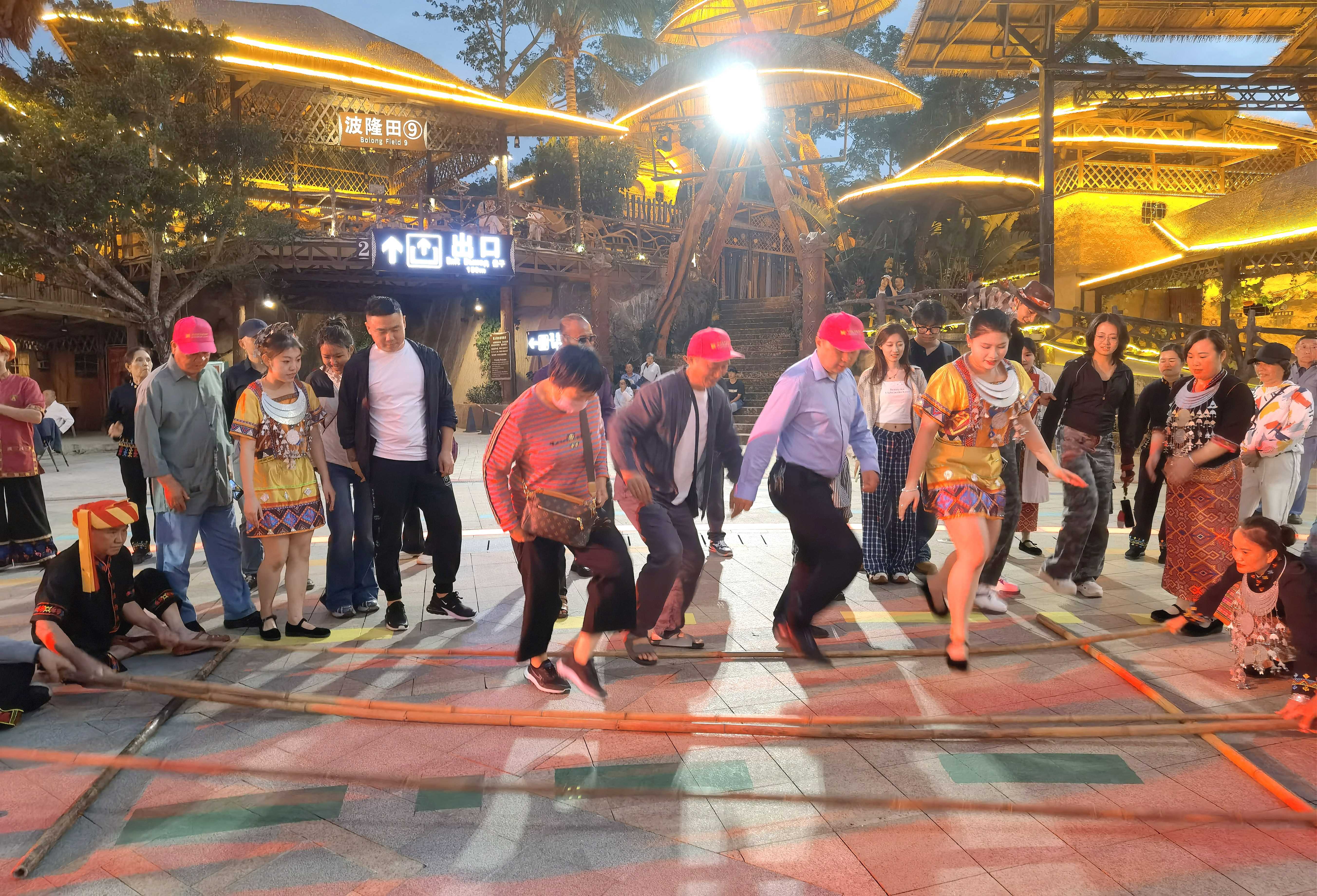 宴会后跳黎苗竹竿舞
