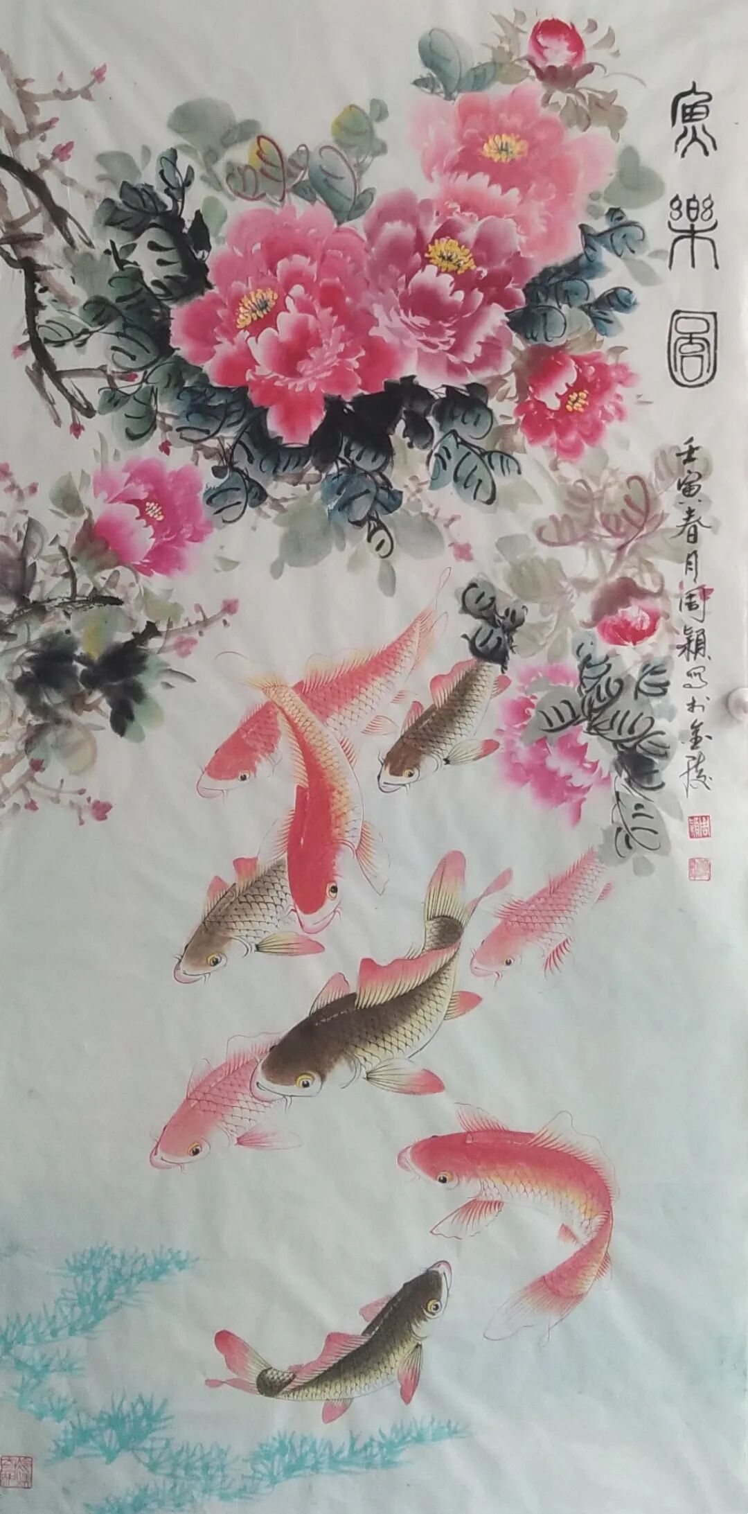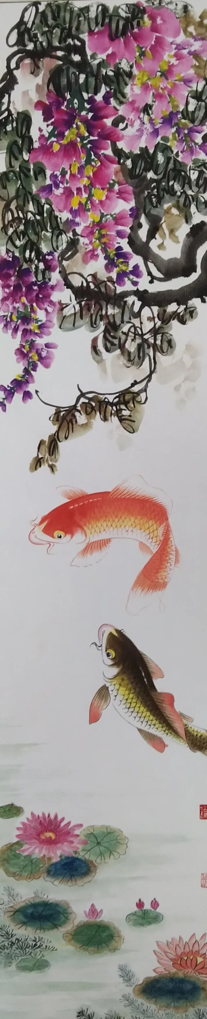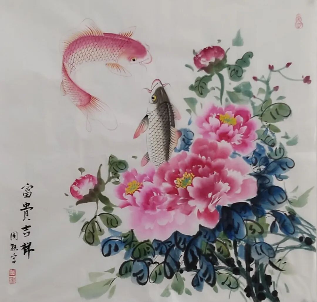 据悉,她勤于观察、重视写生,秉承“外师造化,中得心寰”之思想,在游目骋怀之际,每有会意,就解衣磐礴、挥毫而画,以简练之笔墨描绘岀鱼儿生动之态。在她笔下,那些胖呼呼、圆嘟嘟的鱼儿憨态可掬,或是三三两两悠闲自得地穿梭于水草之间,或是成群结队欢歌笑语嬉戏于碧波之上,整个画面气韵生动、色彩丰富,真乃“清水收眼底,诗意在画中”!