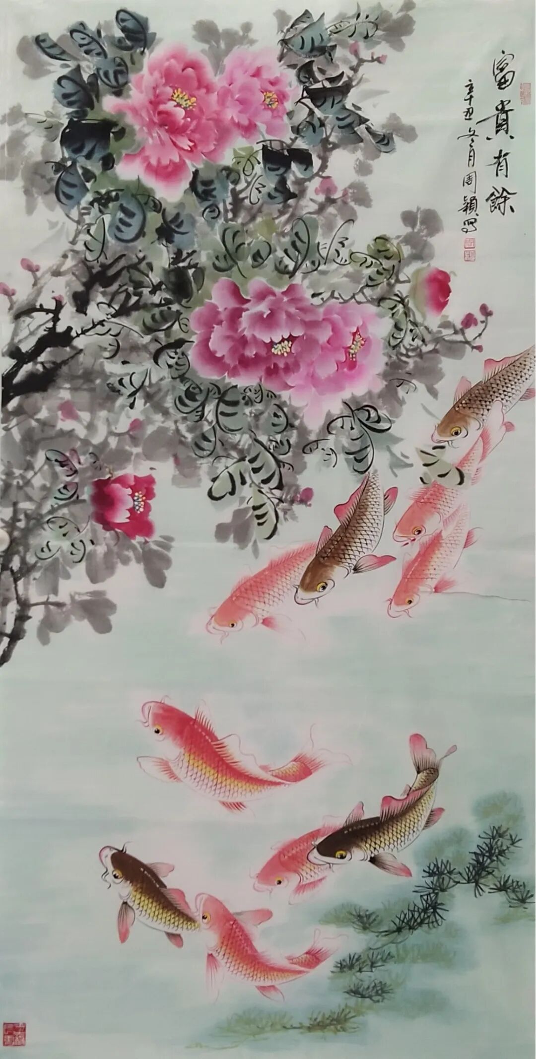 在画家周颖笔下,不光有花鸟的美丽与可爱,还有鱼儿的欢快与活泼。