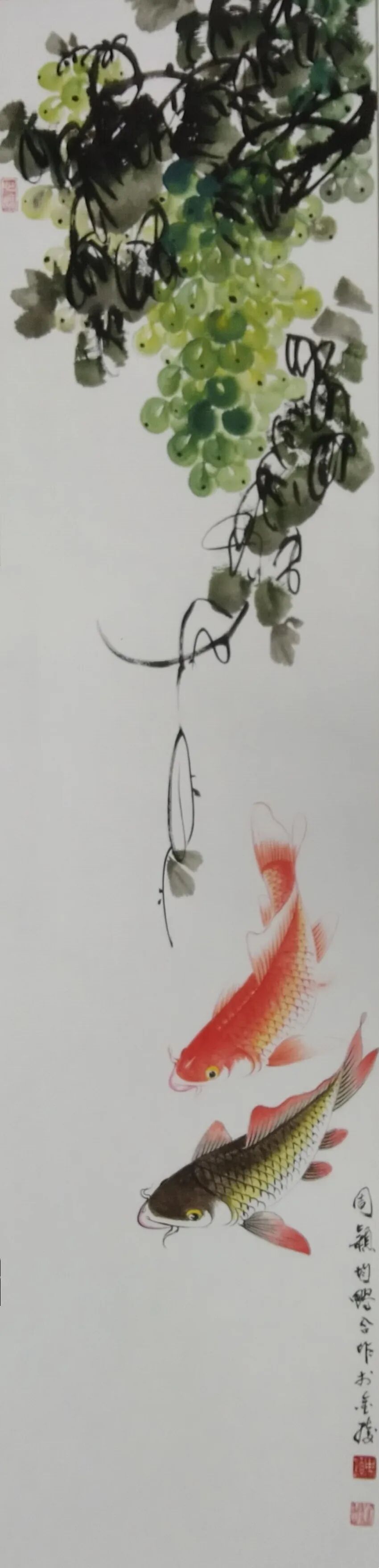 游鱼巡跃纸端上,红鳞摆尾墨生香