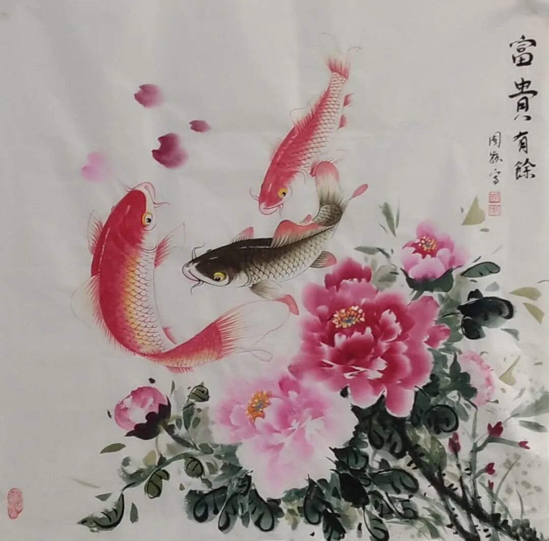 中国传统文化中,“鱼”寓意富足、幸福,她将鱼儿自由自在的天性及深刻的文化内涵倾情注入自己的笔端。