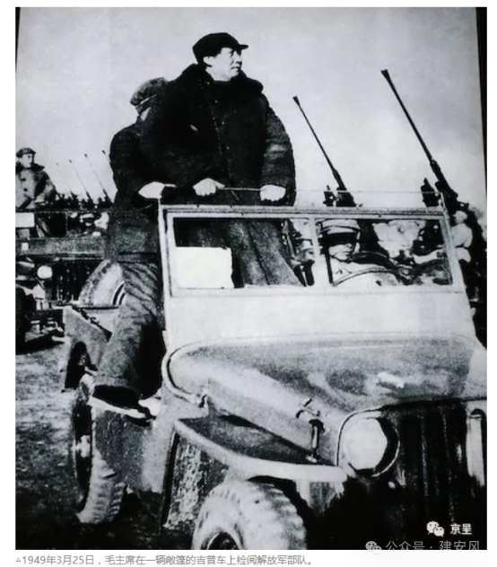 1949 年 元旦,毛泽东亲笔为新华社写下了《将革命进行到底》的新年献词。然而正在这个时候,西柏坡中国人民解放军最高统帅部,却迎来了苏共中央政治局米高扬一行秘密访华团。原来,蒋介石一看大势已去,一方面发表求和声明,提出要在保存国民党军队的条件下与中共进行和平谈判,企图以假和平的阴谋,争取喘息时间,重整力量卷土重来。另一方面他秘密致电斯大林,请求苏共出面调停,劝说中共军队停止进攻,划江而治。于是斯大林就派米高扬悄悄来到西柏坡劝说中共,“适可而止,千万不要过长江,否则一旦引起美国出兵,中国就有可能出现南北朝。”然而毛泽东的回答是,我们能够打败蒋介石,我们必须打败蒋介石,解放全中国。 “中国人民将在伟大的解放战争中获得最后胜利,这一点甚至连我们的敌人也不怀疑了。”并拟七律一首转告斯大林:“钟山风雨起苍黄,百万雄师过大江。虎踞龙盘今胜昔,天翻地覆慨而慷。宜将剩勇追穷寇,不可沽名学霸王。天若有情天亦老,人间正道是沧桑。”成为千古佳话。