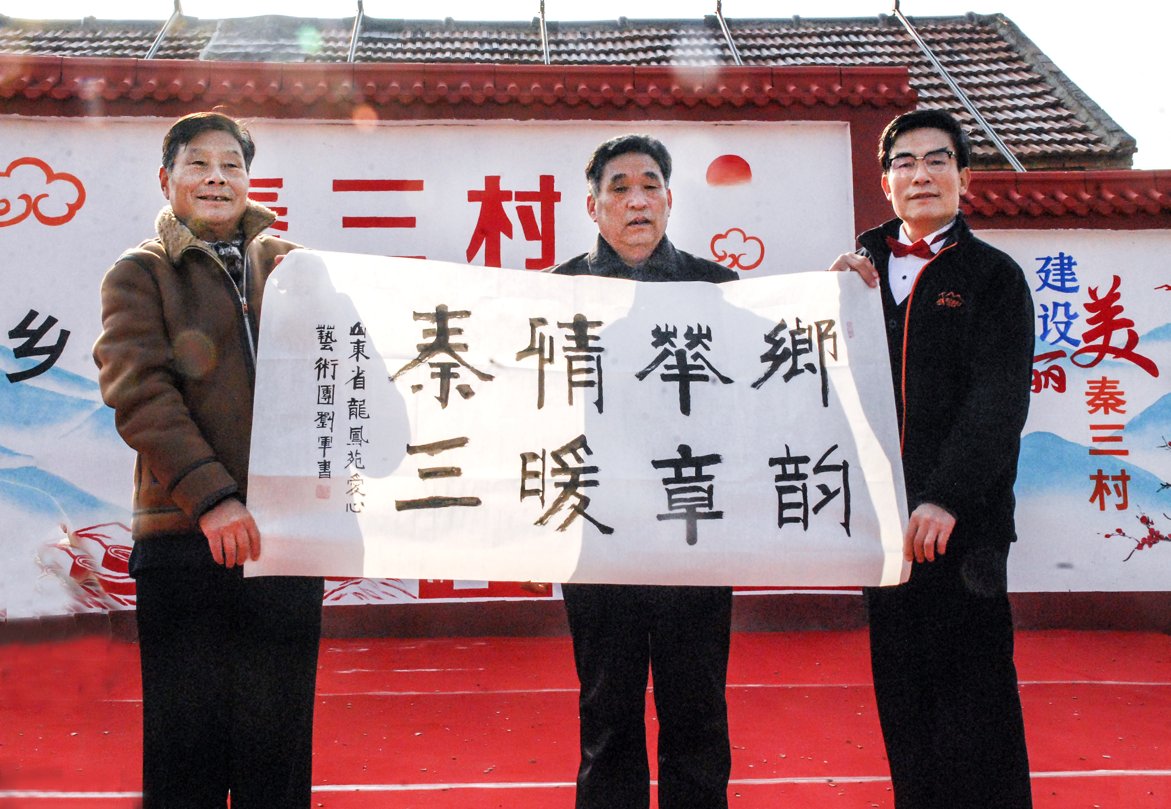 “乡村振兴大舞台不仅是文艺演出的场地,更是凝聚人心、展示风采、培育乡风文明的重要阵地。”济南市历下区住建局派驻秦三村第一书记邢可锋的话语掷地有声。自驻村以来,邢可锋扎根沃土,不仅推动石磨面粉机、高科技蔬菜种植等项目落地,助力乡亲们脱贫致富,更注重文化赋能,通过搭建文化平台、开展惠民活动,让文明新风浸润乡村。活动中,龙凤苑书法艺术家还为秦三村赠送了书法经典作品,墨香传递着文化传承的温度,男生独唱《双脚踏上幸福路》、男女二重唱《祖国》等节目,更是唱出了乡亲们跟党走、奔小康的坚定信念。