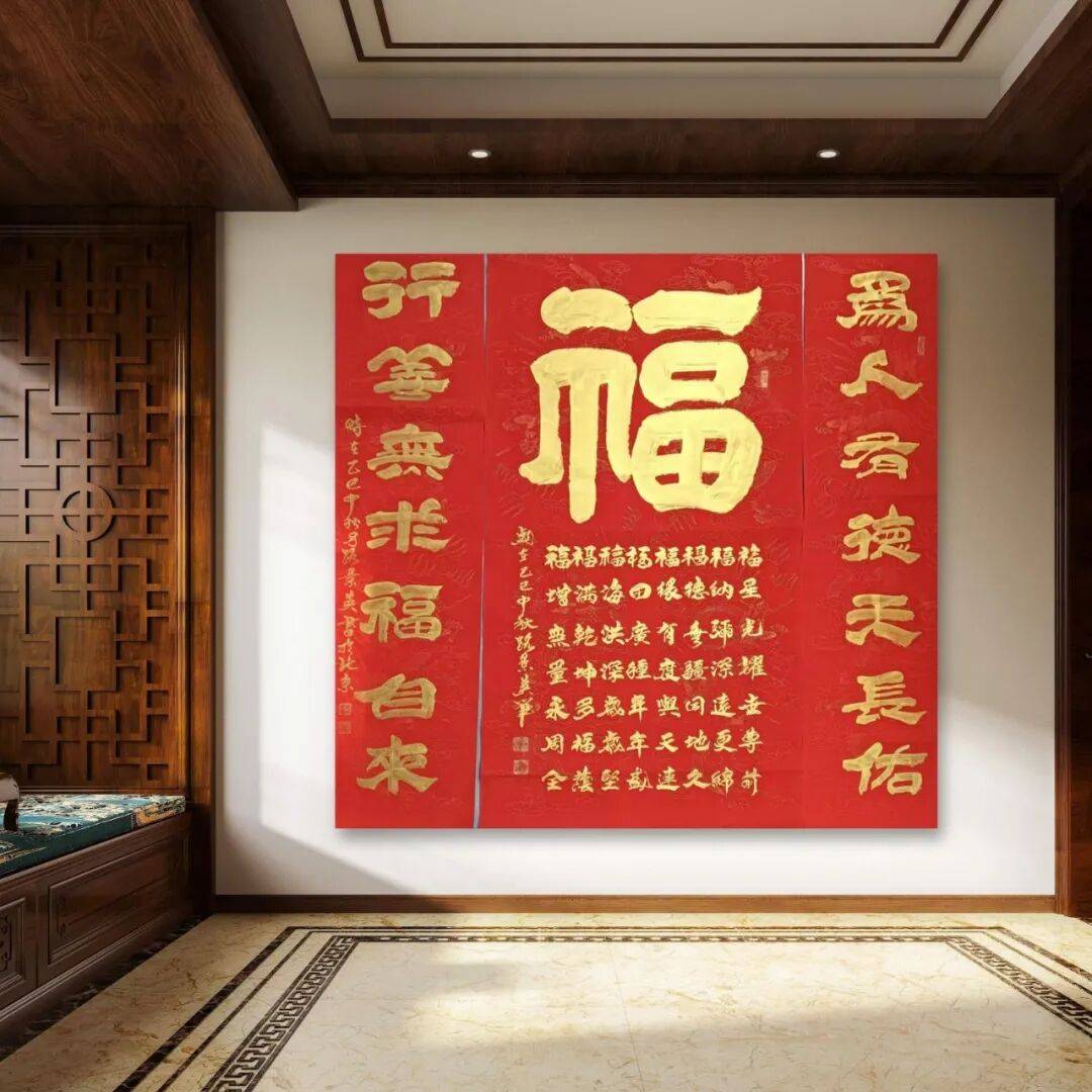 “笔锋独特”是路景英隶书的另一大亮点。笔锋是书法笔法的核心,直接决定线条的质感与表现力。路景英先生在借鉴刘炳森、卢定山笔法的基础上,不断锤炼自己的笔锋技巧,形成了兼具刚劲与灵动的独特笔锋。他的笔锋时而如利刃出鞘,刚劲锐利,在书写横画、竖画时,笔锋劲挺,线条挺拔有力,尽显苍劲之气;时而如流水潺潺,灵动婉转,在书写撇画、捺画及转折之处,笔锋圆润流畅,线条富有弹性。这种独特的笔锋运用,使他的线条极具变化性,时而厚重如泰山压顶,时而轻盈如惊鸿一瞥,时而刚劲如钢筋铁骨,时而婉转如绵里藏针。