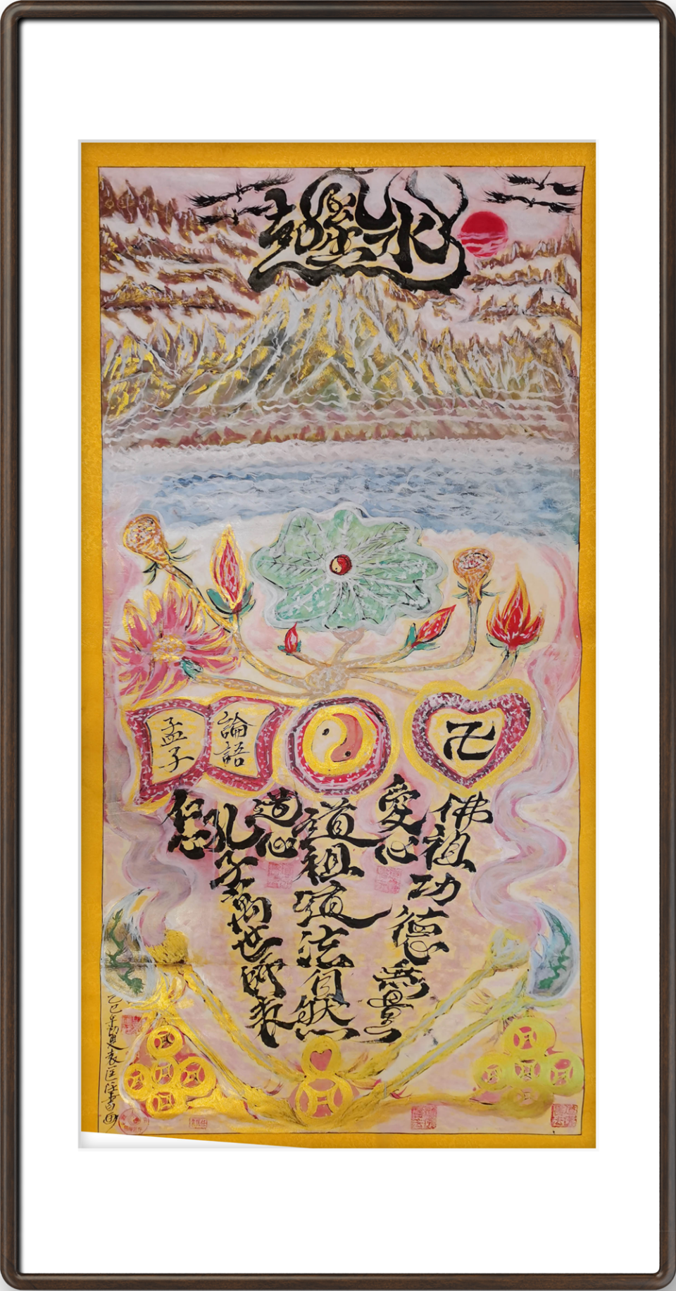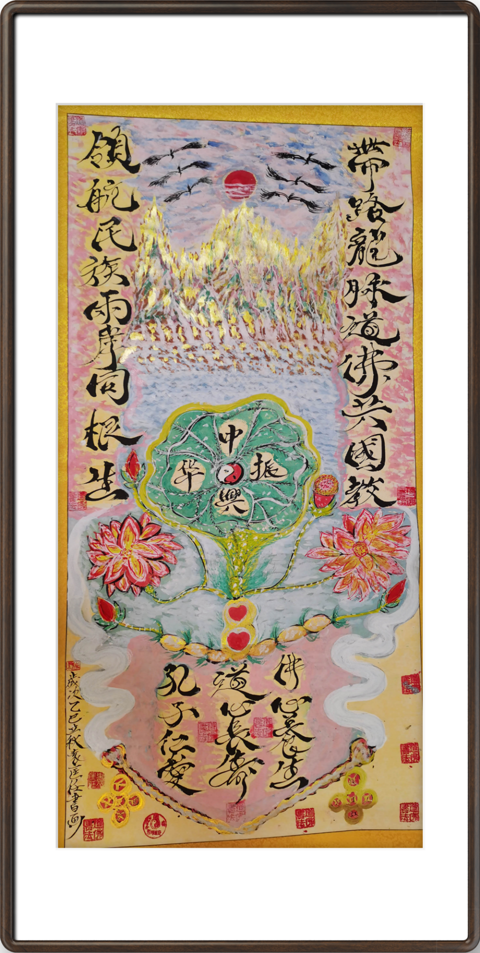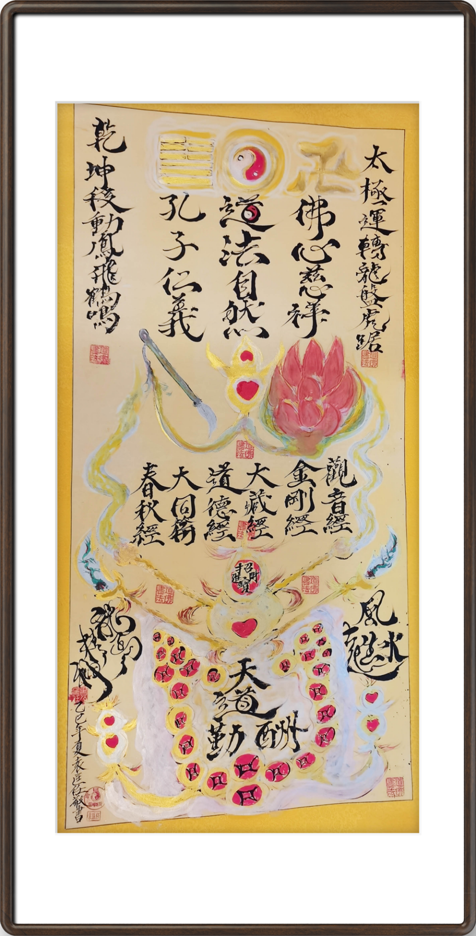 袁匡任三博士之孔道佛风水图腾能量书法,创作教育基地,作品分九类: