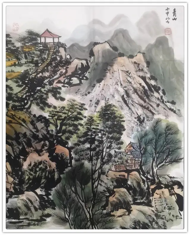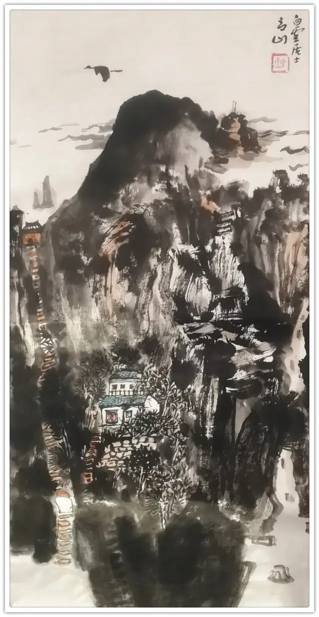马青山先生的山水画创作,集中体现了其综合性的艺术修养与哲学思考。其构图稳中求变,既能作巨幛大幅,气势恢宏,层峦叠嶂中见出开阔的宇宙意识;亦擅精制小品,一隅山水,情趣盎然,充满诗意的遐想。在笔墨语言上,他追求“苍”与“润”的辩证统一。