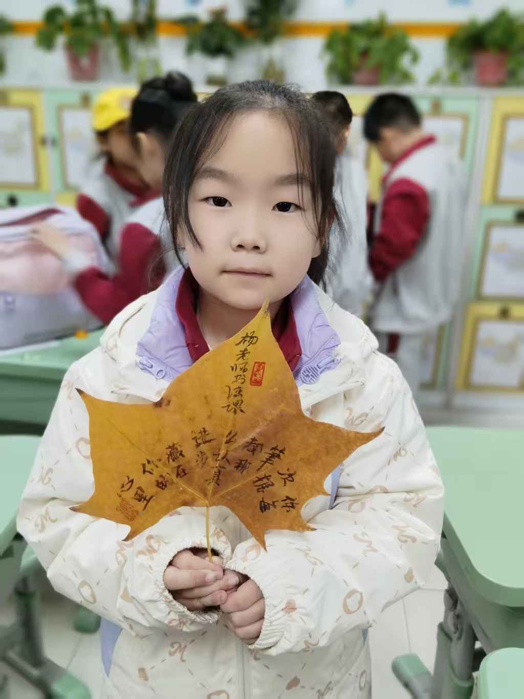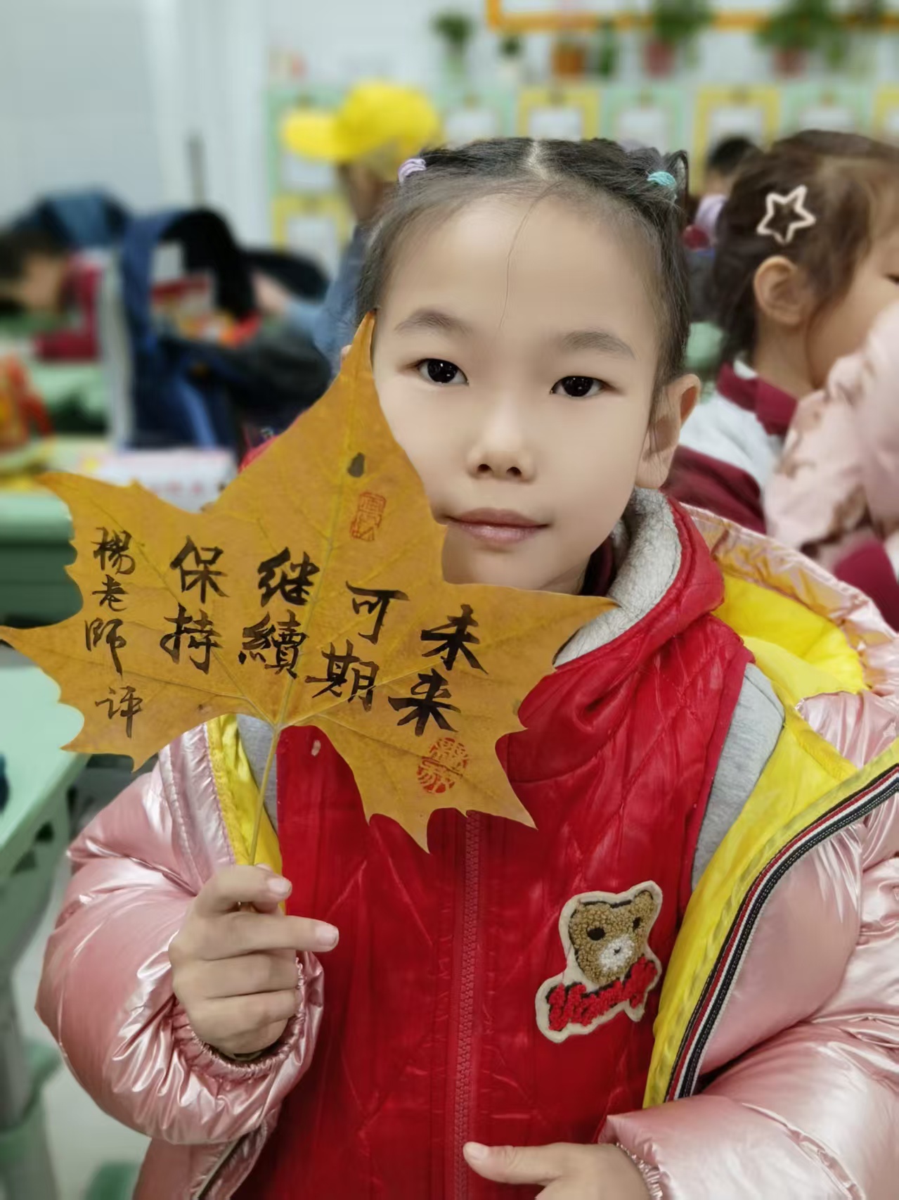 这个秋冬季节,我们曾在叶脉上写过小诗,曾在宣纸上留下墨痕,也曾送给孩子们礼物作为奖励,如今在满室欢歌中圆满收尾。这段与笔墨相伴的时光,已然让书法的美好在孩子们心里扎了根。