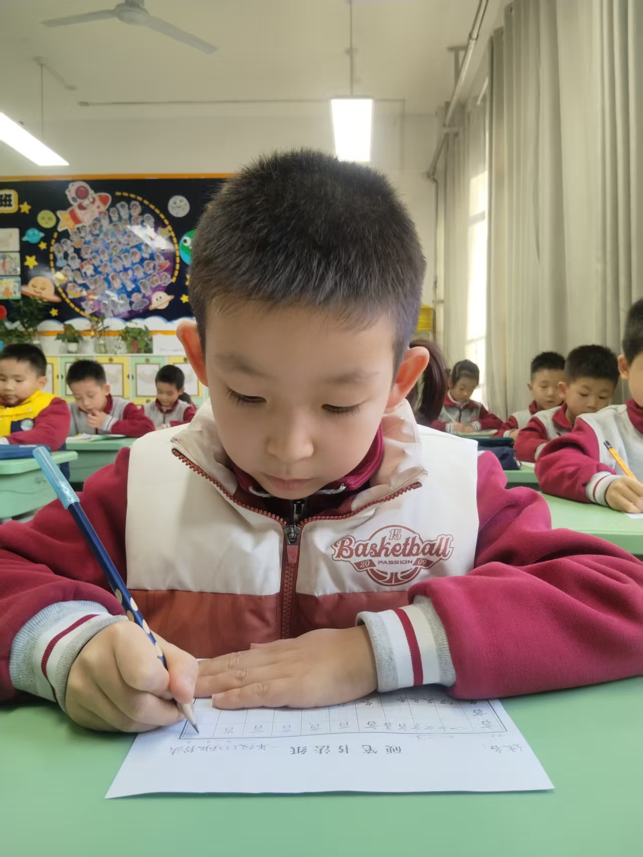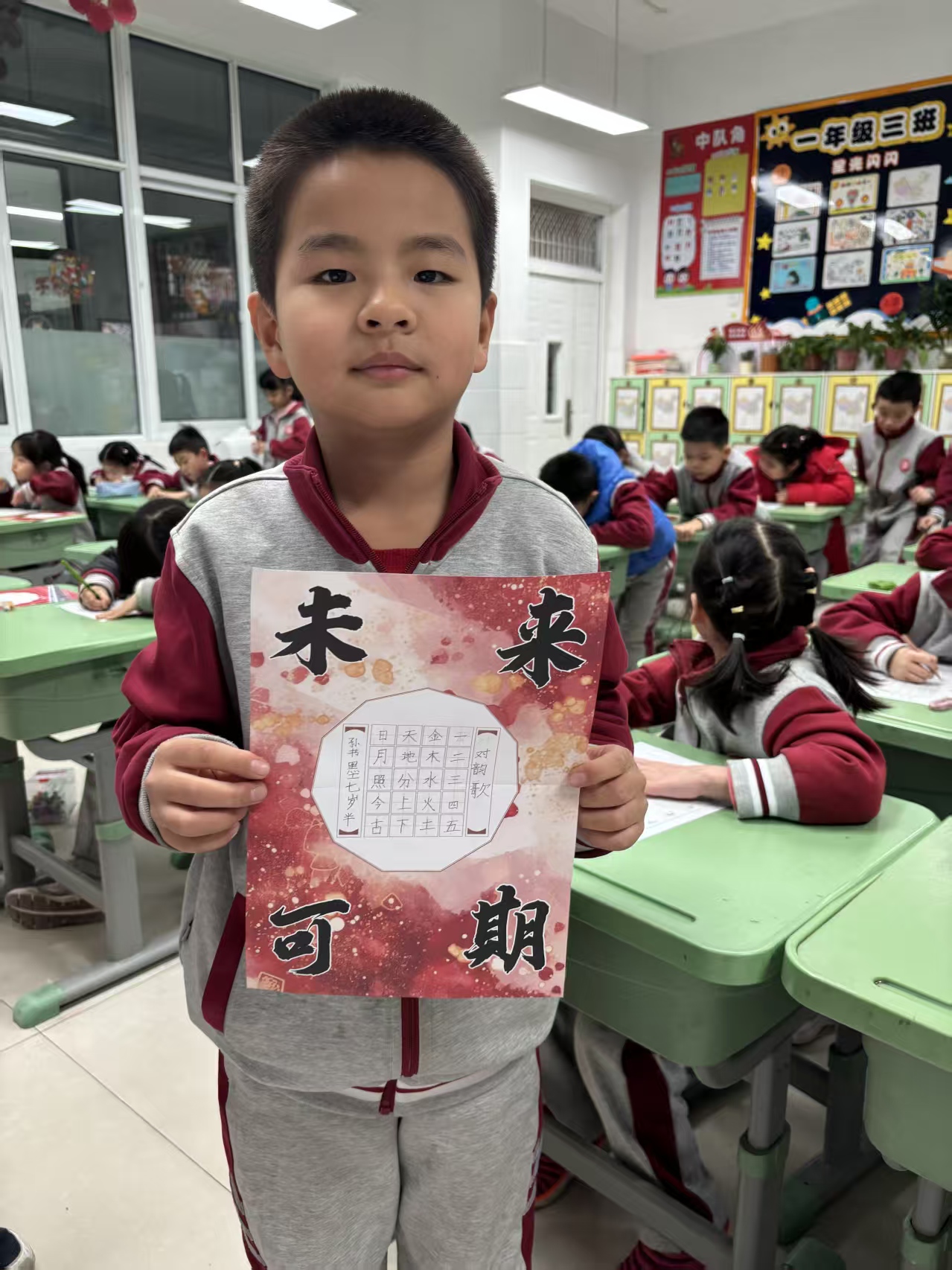 一笔一画间,孩子在磨练专注的力量。每一个字的起笔落笔,都需要全身心的投入。那一刻,躁动的心渐渐沉静,纷扰的世界被隔绝在外,只剩下笔尖与纸的轻语。课堂上,总能看到孩子们专注落笔的模样,尤其要表扬张佳杭、薛忆歆、党夕涵、张吉皓、苏诣然、孙锦瑄、孙书墨、刘逸辰、王馨桐、陈泊言、原艺芮、周思佑等同学,今日的古诗作品写得格外工整舒展,笔锋间透着用心,是全班同学的好榜样!