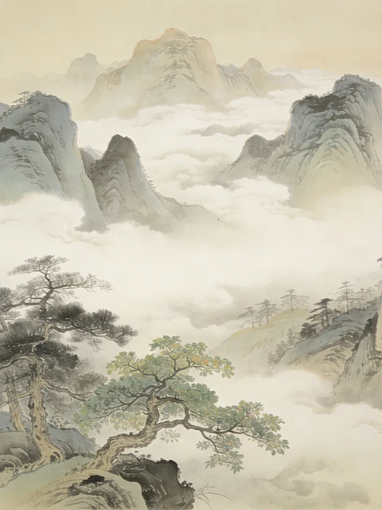 云来山更佳,云去山如画。山因云晦明,云共山高下。倚杖立云沙①,回首见山家②。野鹿眠山草,山猿戏野花。云霞,我爱山无价③;看时行踏④,云山也爱咱。