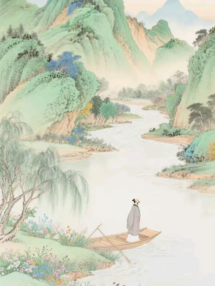 不留恋青春少年,不顾及雪发衰颜。一舟风雨绵,满路烟霞染。心之念常幻先贤,常把闲情化素笺。遂文愿诗书共展。