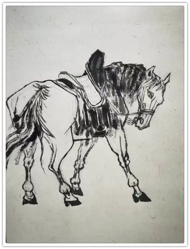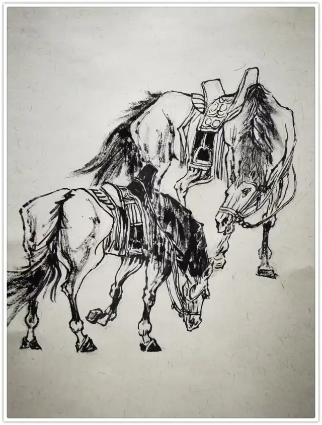 刘先生写生锤炼真功夫,画马之活与深入草原牧区,通过数千幅速写捕捉马的肌肉纹理与神情动态。这种“胸有成马”的积累,让作品既生动逼真,又充满生命张力。