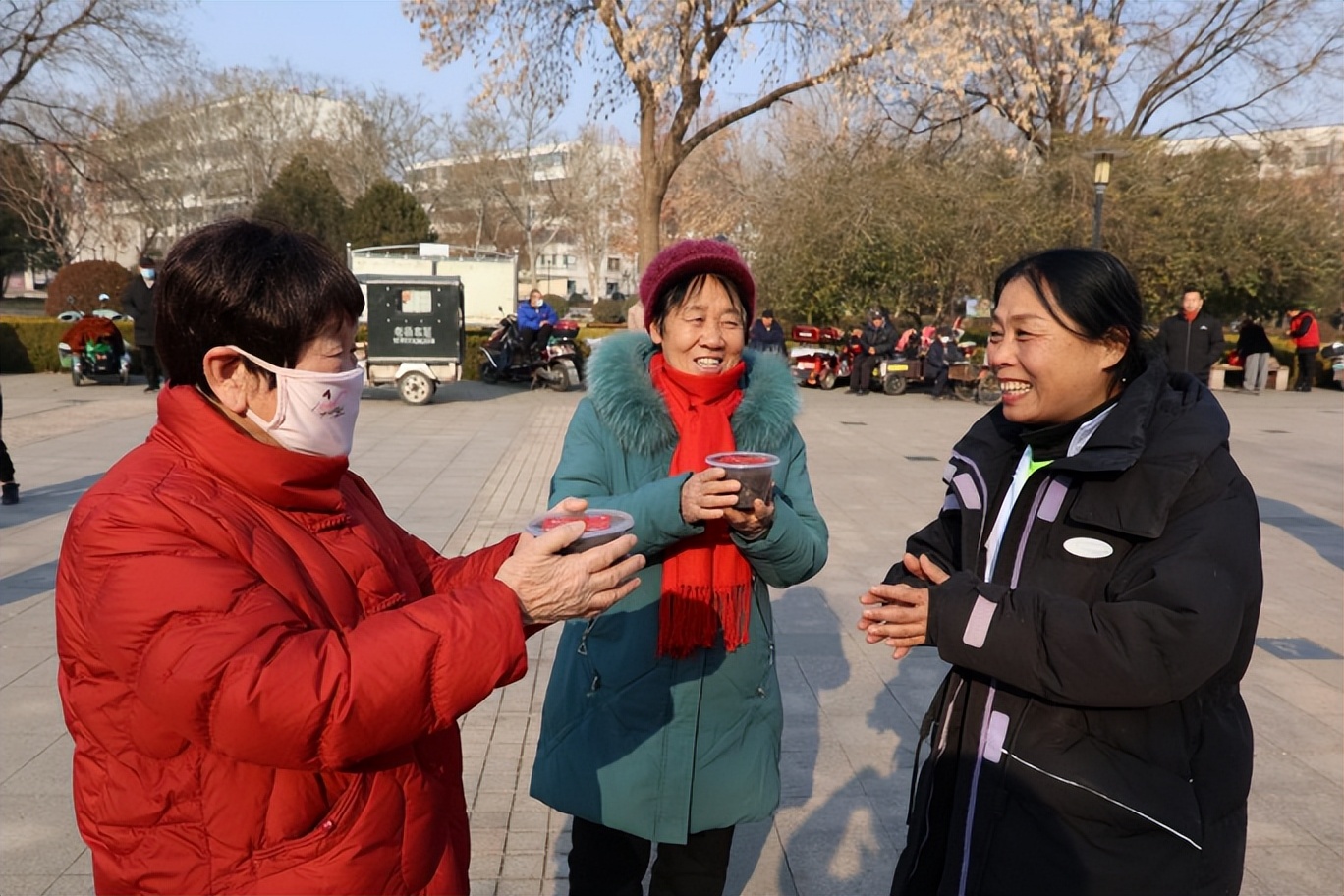 张维芳、宋小君、毕海霞、姚玉霞、刘荣芳......老师忙前忙后,已记不清张希军老师开着电动三轮车不知跑了多少趟,“天香歌友汇”的张淑玲、王爱云老师也加入了分发腊八粥的行列,领导们也走上街头给一线的劳动者送上暖暖的心意。
