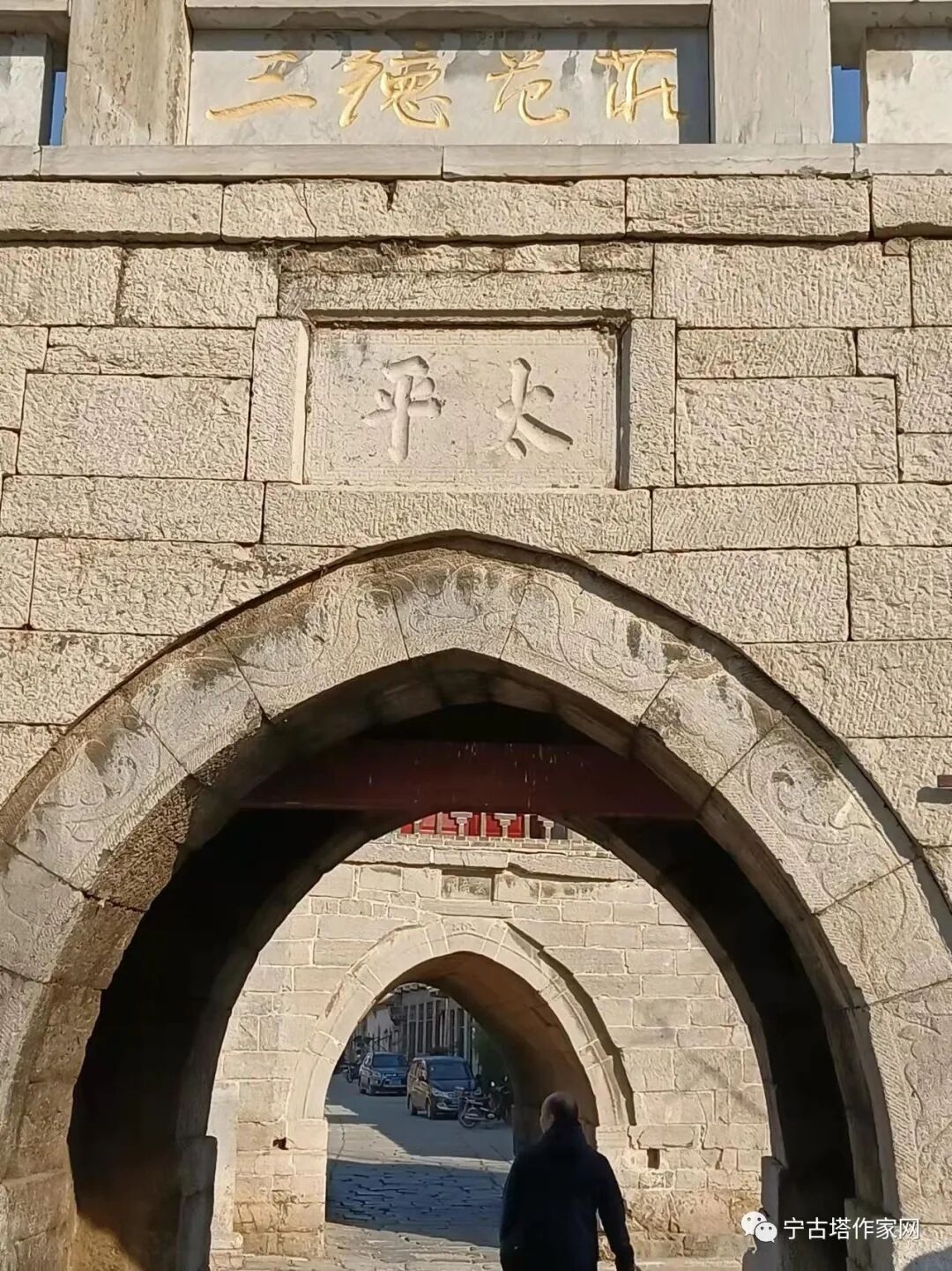我们先去的三德范村,这里是昔日通往大邑的要道,有古门楼,古牌坊,古戏台,有石条埔就的磨得锃光瓦亮的石板路,石板上有压得深深车辙,还有许多古建筑和历代高官,名人留下的关于古道和古村的碑林。我们大约在这里逗留了两个多小时。