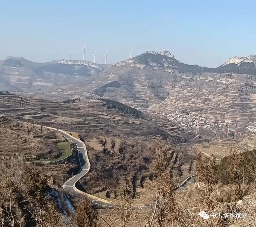 又从三德范古村去往石匣子古村,走的全是山路,山上还有雪,背阳坡的路上还结了冰。路比较滑,山上的绿色只有松树,可树上的鸟儿还在娓婉悠扬的欢快地唱着,跳着,好像是古村落派岀的使者,正在山上迎接远来的尊贵客人。