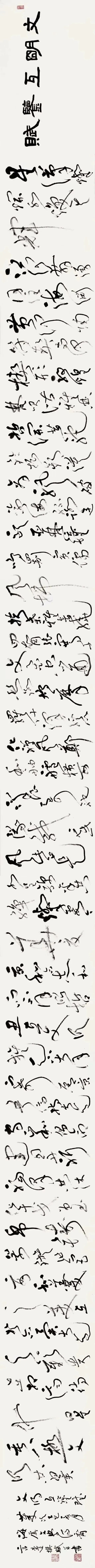 特别值得关注的是,言先生始终坚持以"篆籀笔法"作为贯穿各体的"祖线",这使得不同书体之间既有鲜明的个性特征,又有内在统一的笔墨基因。每一副楹联的内容均为先生自撰,文辞精炼而意境深远,将传统文化的精髓与现代人文思考完美融合,真正做到了"文墨相生,诗书合一"。二十米大草长卷:天地对话写胸怀展览的核心巨制——二十米大草长卷《文明互鉴赋》,堪称当代书法艺术的里程碑之作。这件作品的创作背景具有特殊的时代意义:2025年,由中国倡议、联合国大会通过决议,将每年6月10日设立为"文明对话国际日"。言恭达先生敏锐地把握这一历史契机,以艺术家特有的敏感与担当,创作了这篇呼应时代主题的鸿篇巨制。
