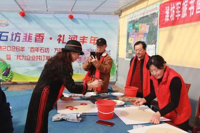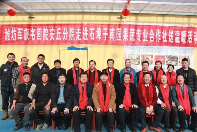 春节来临之际,腊月二十上午,潍坊军旅书画院安丘分院部分书画家,冒着寒风,走进安丘市石埠子镇南园果蔬合作社开展了一次庆新春送温暖活动。