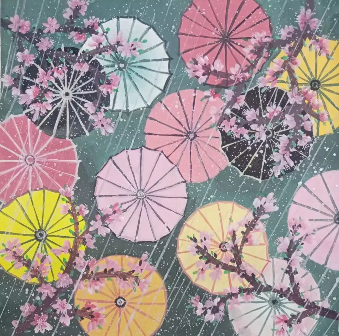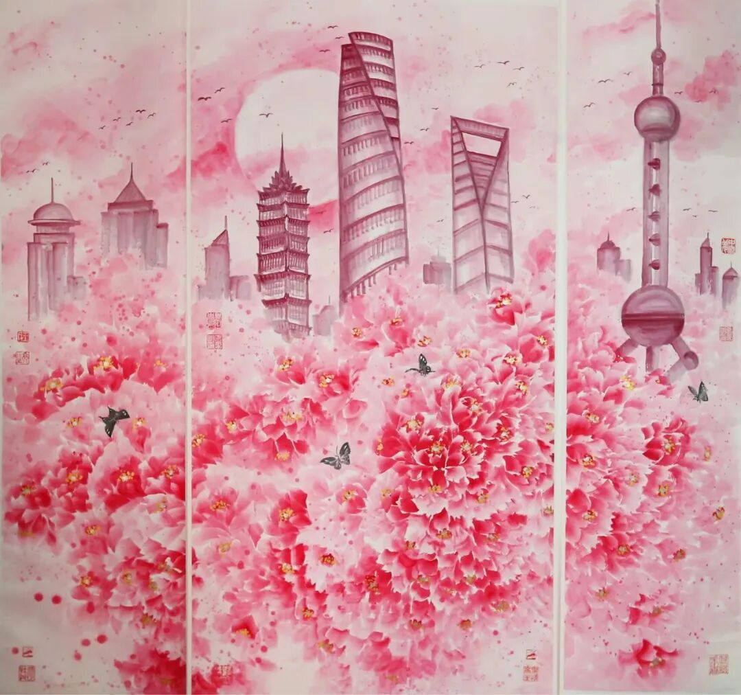 泼墨与晕染:大笔挥洒间,色彩如星河倾泻,既有水墨的氤氲层次,又有水彩的通透灵动感;