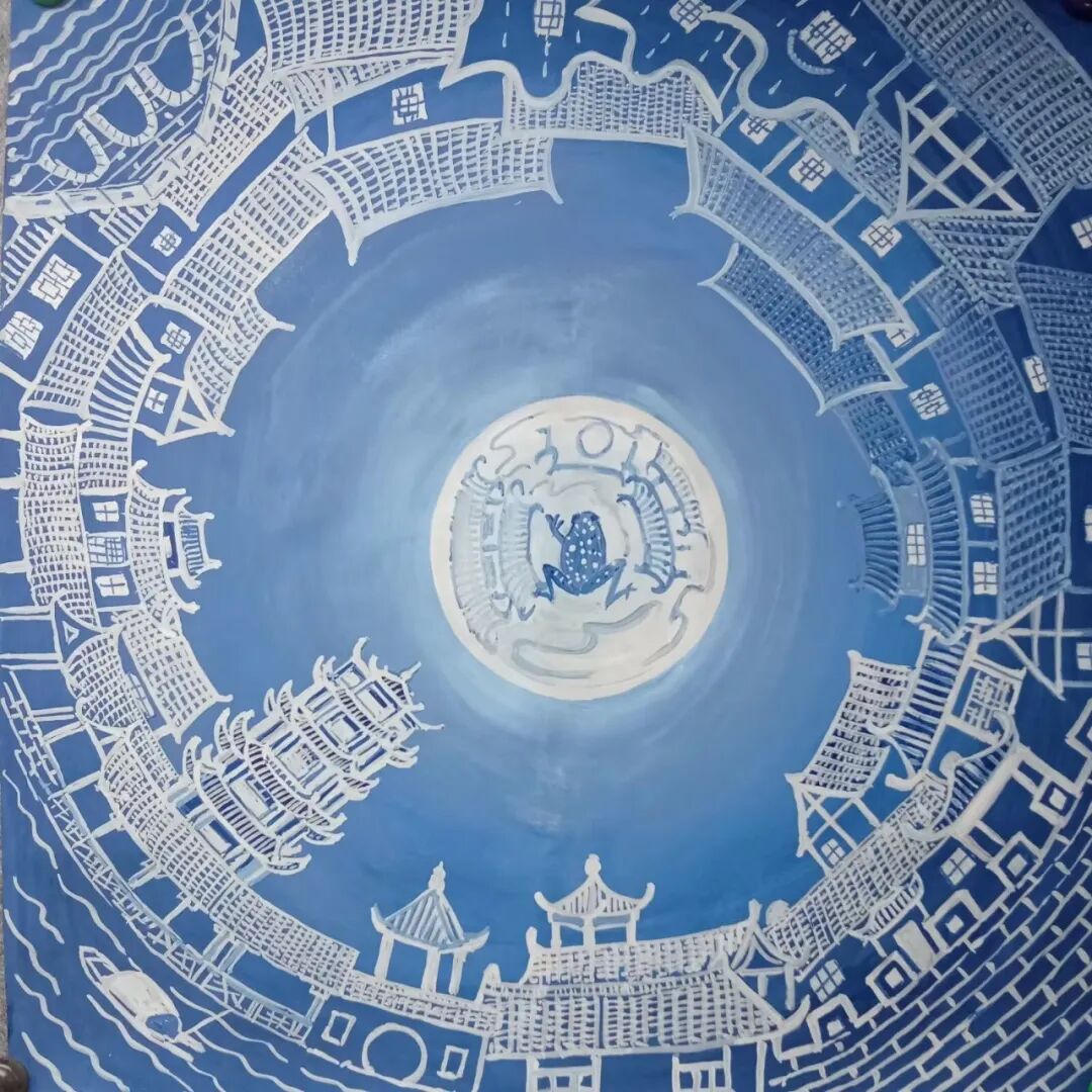 禅意留白:《中秋夜话》里,一轮满月占据画面三分之二,留白处似有桂香浮动,将"此时无声胜有声"的意境推向极致;