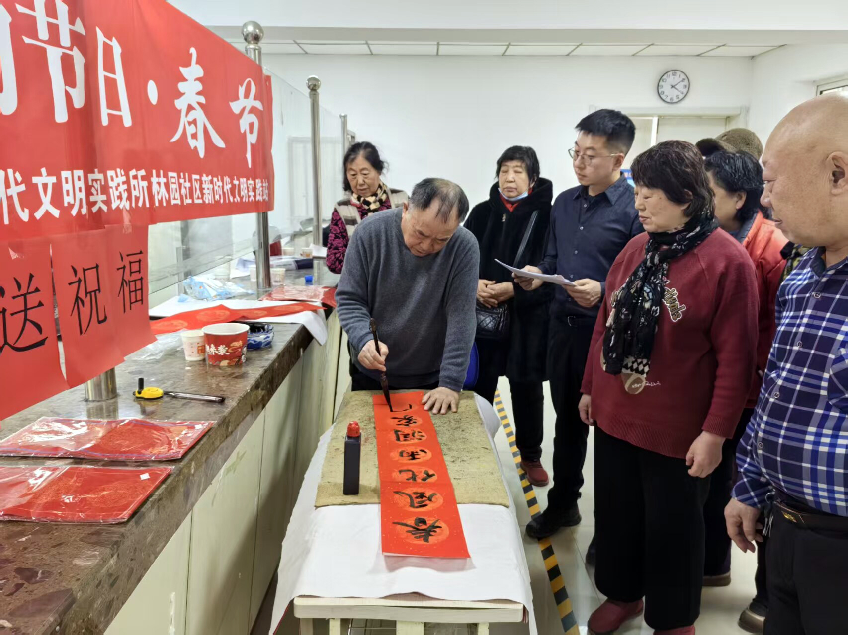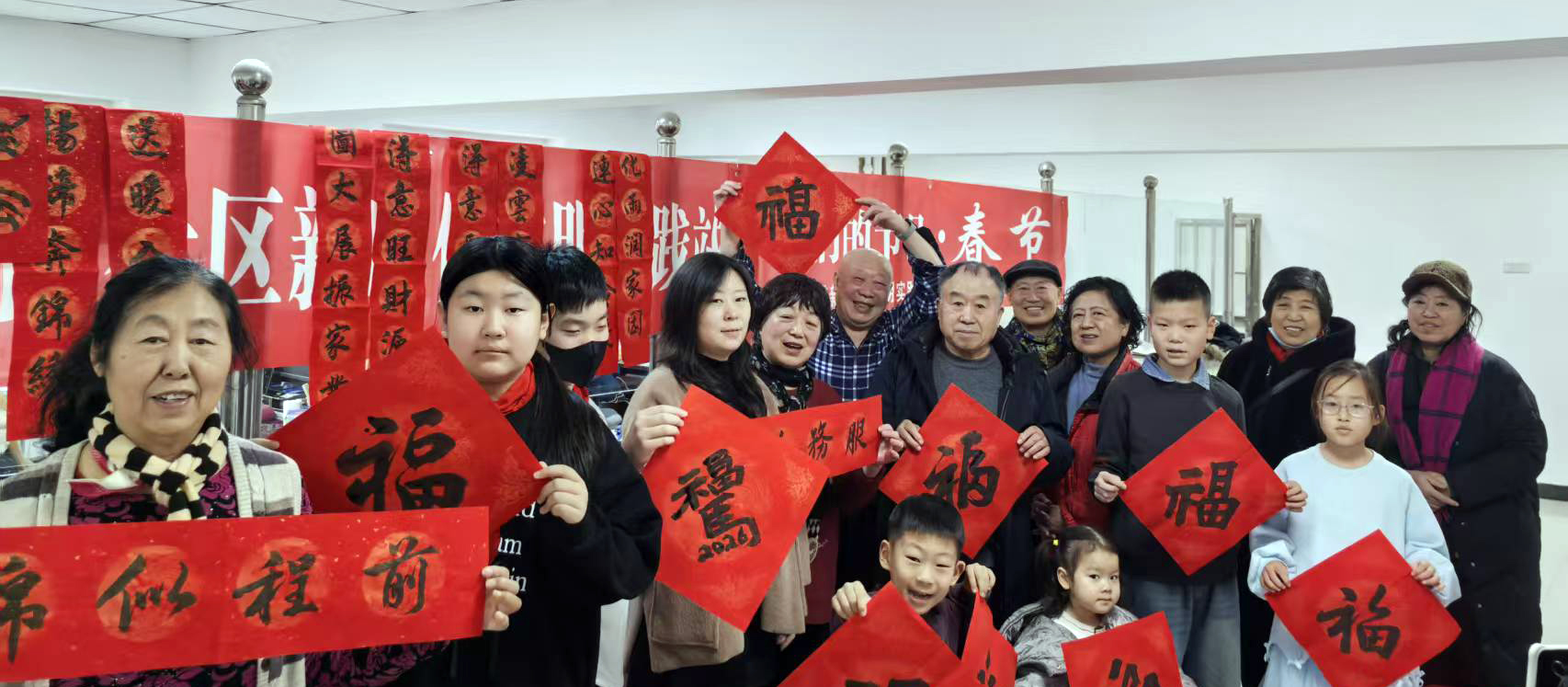 活动现场设在林园社区新时代文明实践站,大红喜庆的福字装点其间,暖意融融、墨香四溢。现场,来自街道关工委、老科协的‘五老’志愿者、社区工作者及寒假期间参与活动的小学生等近20人参加此次活动。