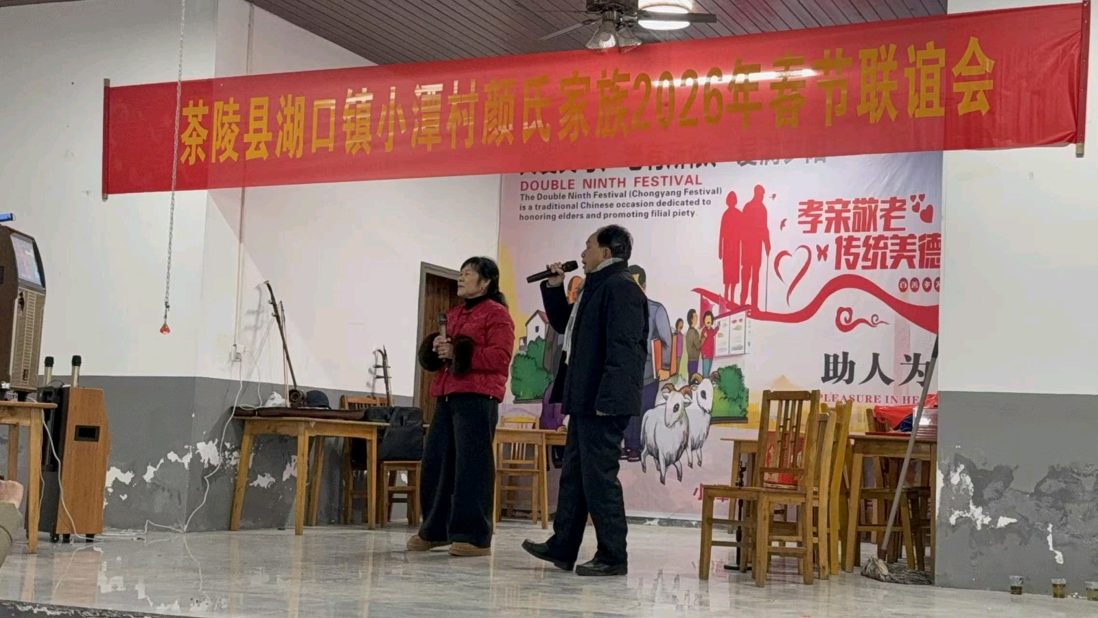 这场“家族春晚”阵容虽小,却诚意十足。从独唱、夫妻对唱到二胡与笛子独奏,从接地气的小品到神奇的魔术表演,30多个节目轮番登场,均由颜家老少亲手编排。没有专业的灯光舞美,却有最真挚的情感;没有明星大腕,却有最鲜活的笑脸。村民们用熟悉的乡音、质朴的表演,将寻常生活的幸福与对新年的期盼融入每一个节目,让小小的礼堂成为了欢乐的海洋。