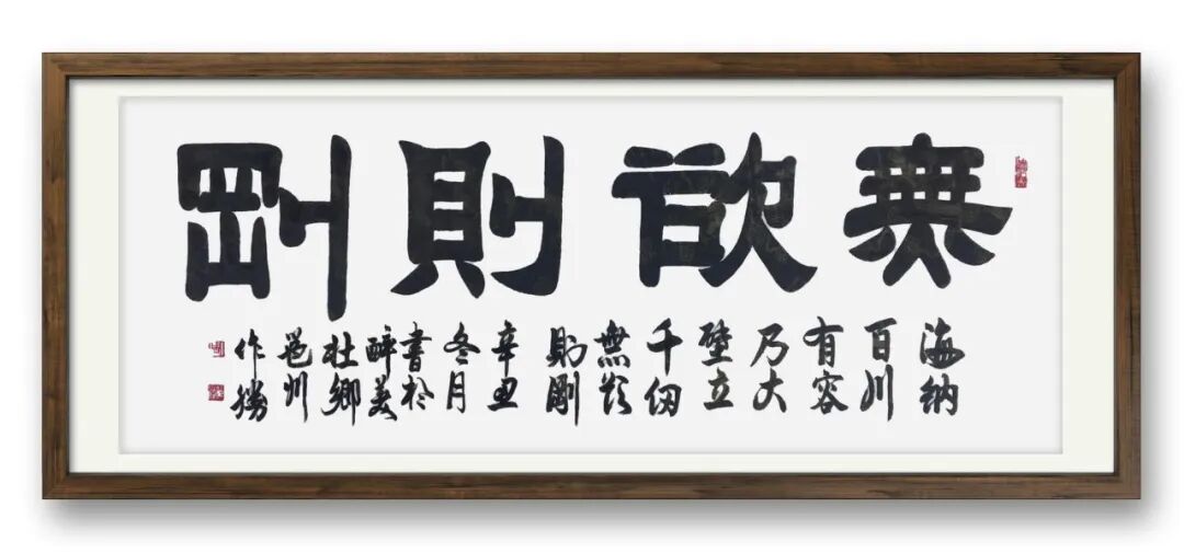 先生的书法,粗粝处见细腻,奔放中藏严谨,形成了独树一帜的艺术风貌。笔力粗犷却不粗糙,笔墨酣畅却不肆意,开合之间,尽显气韵跌宕;书体多变却不杂乱,神采飞扬却不张扬。厚重处,承载着人生的沉淀与沧桑,似历经风雨后的从容淡定;飘逸处,寄托着心性的澄澈与洒脱,如胸有丘壑后的自在疏朗。这种“厚重而不失飘逸,灵动而不失庄严”的格调,让其作品既有传统书法的笔墨根基,又有当代艺术的审美意趣,得以跨越圈层,深受书法爱好者的喜爱与珍藏。