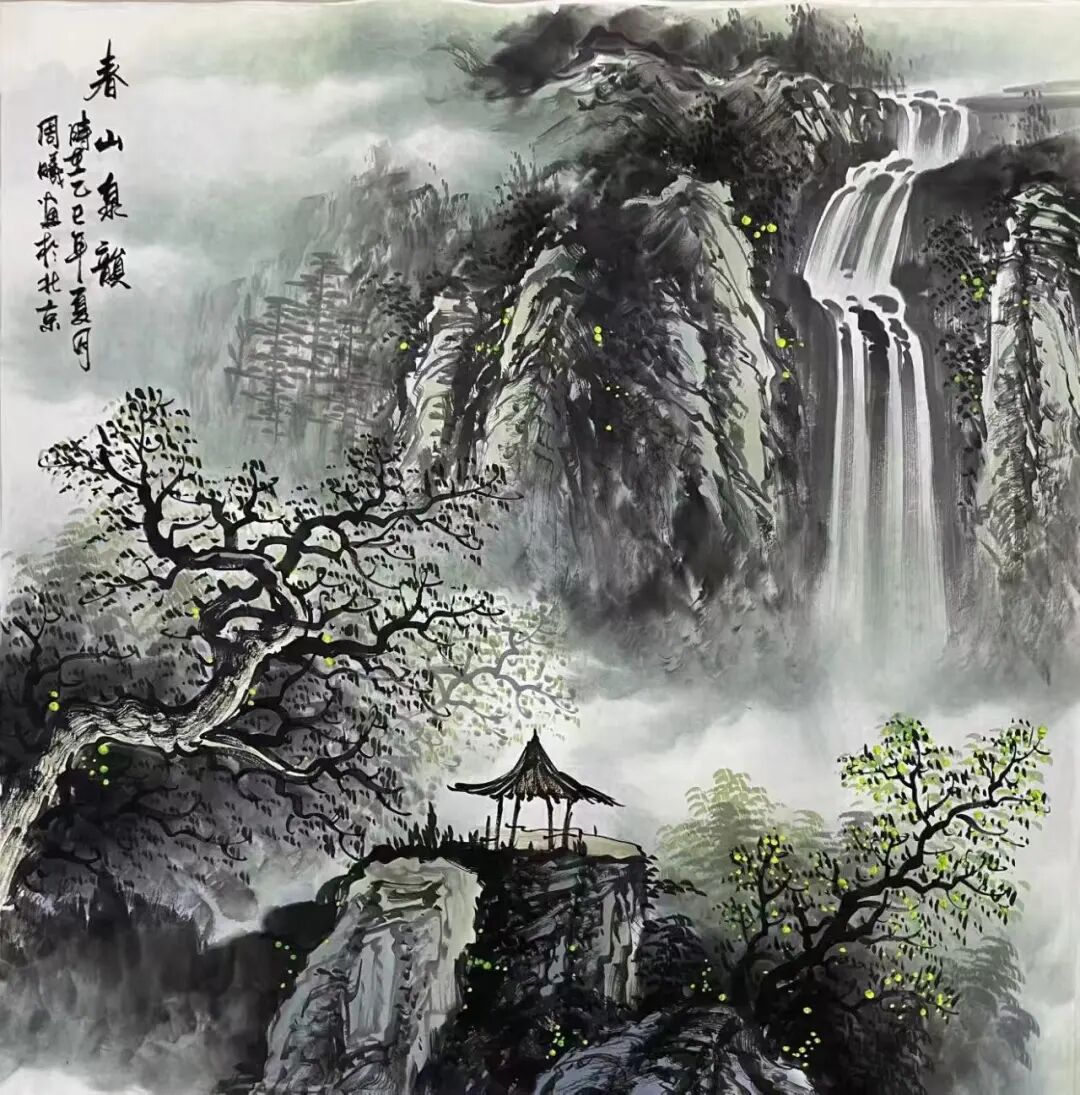 周曦的艺术创作,始终紧扣时代脉搏,回应社会关切。他的作品题材广泛,既有对山水自然的诗意描绘,也有对人文精神的深刻叩问。在他的笔下,传统山水画不再是孤立的审美对象,而是承载着当代人对生态、乡愁与精神家园的思考。