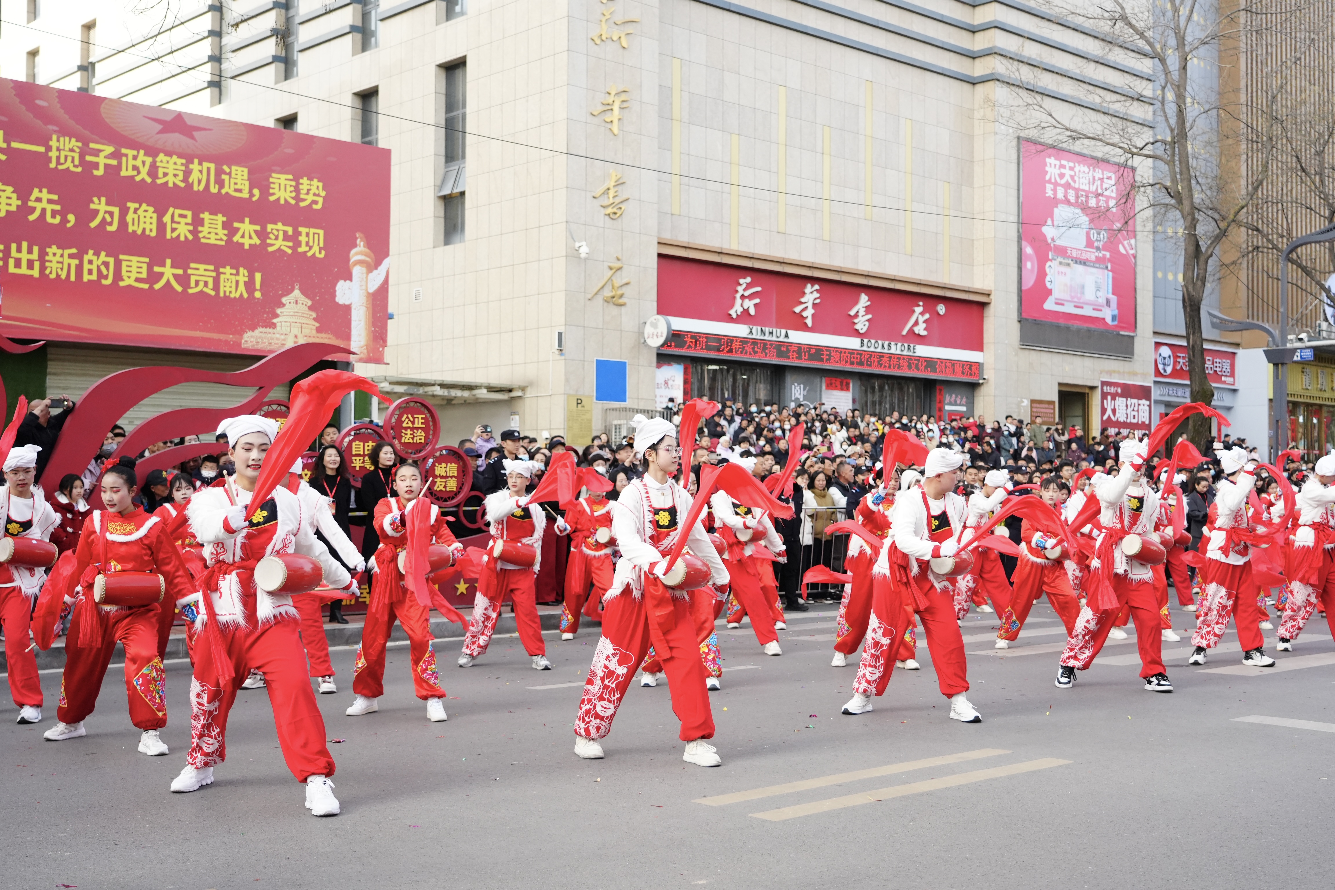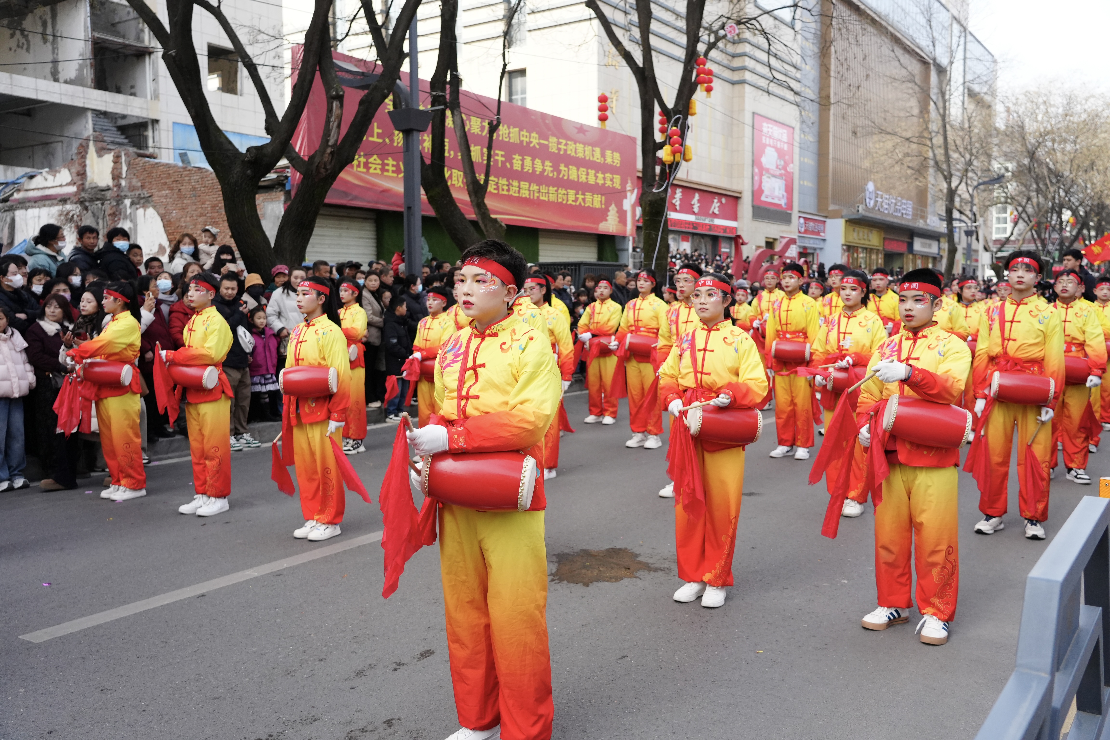 上午9时30分,随着一声号令,浩浩荡荡的社火游演队伍正式启程,沿着街道向东大街缓缓行进。队伍绵延数百米,一眼望不到头,锣鼓声、欢笑声、喝彩声交织在一起,汇成一曲激昂欢快的新春乐章,响彻凤翔古城的上空。
