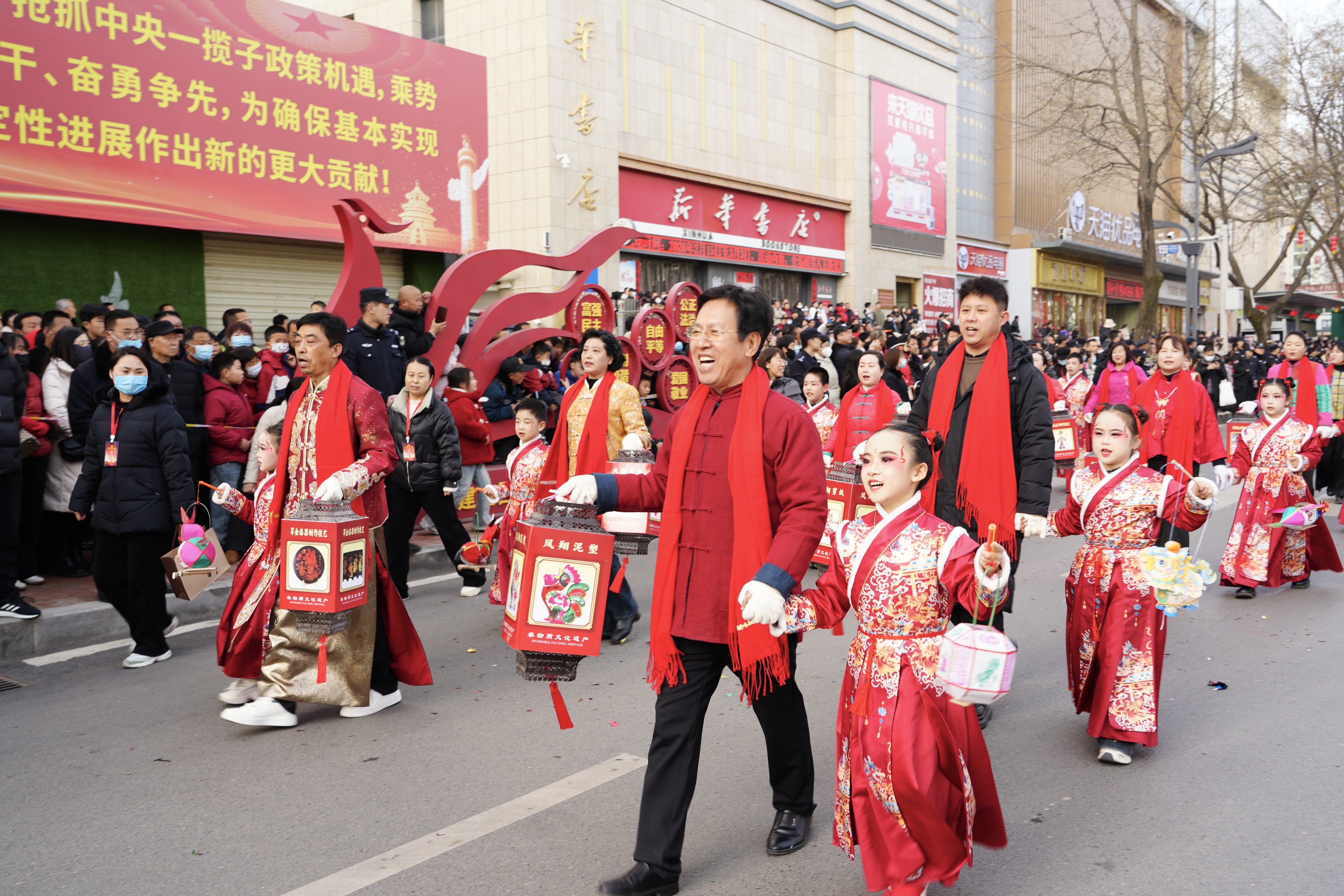锣鼓喧天辞旧岁,社火欢腾闹新春。2月26日,农历马年正月初十,陕西宝鸡凤翔区锣鼓齐鸣、彩旗飞扬,“骐骥驰骋 彩凤鸣瑞”2026年社火游演活动盛大上演,铿锵的鼓点敲出新春喜悦,灵动的社火演绎民俗根脉,五彩的彩车展现时代新姿,数万群众扶老携幼、沿街驻足,在热闹非凡的民俗盛宴中感受最浓的年味。