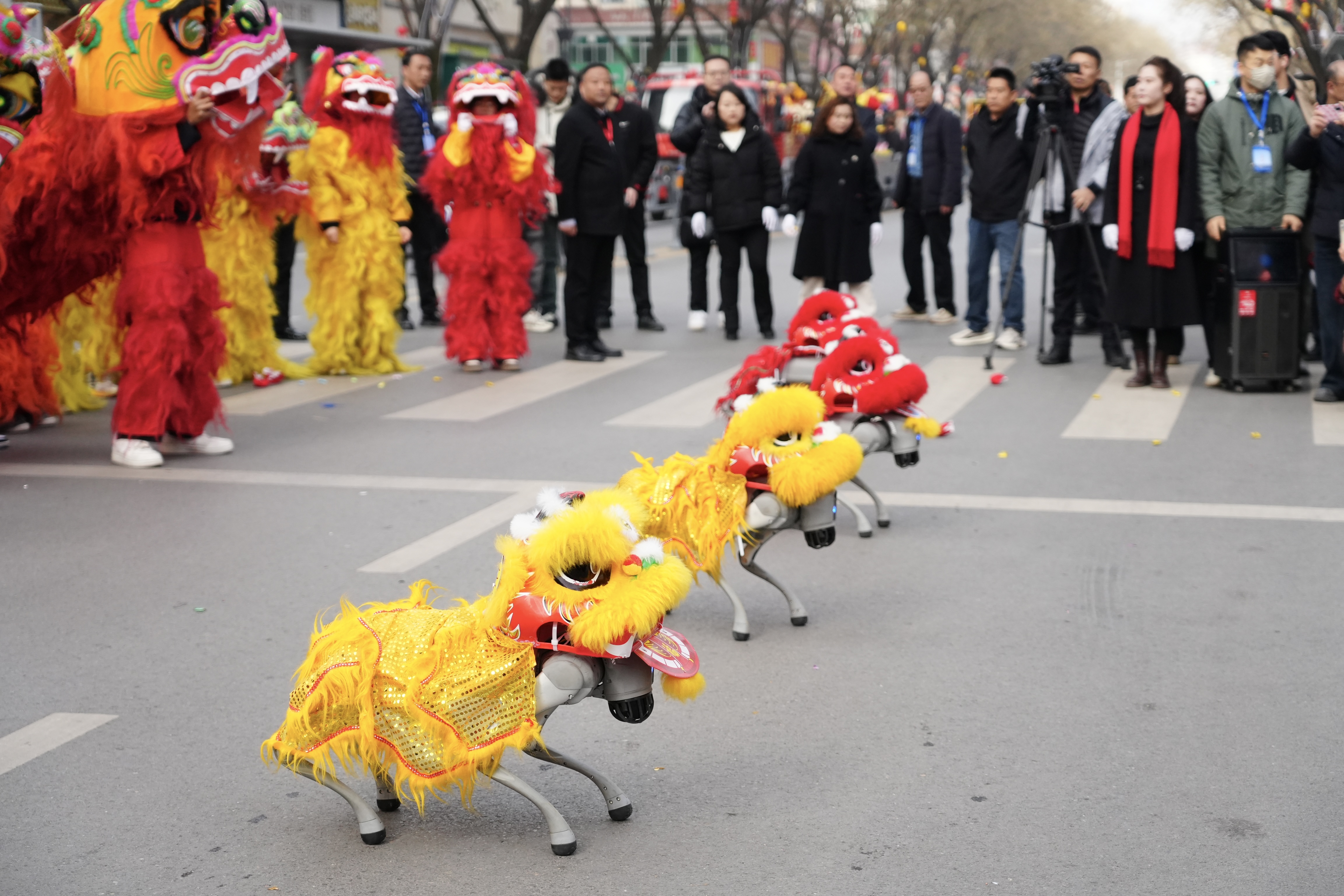 游演现场高潮迭起、惊喜不断。由无人机编队带来的“凤舞九天,龙腾盛世”空中展演,让现场观众连连惊叹,地面除了传统的社火表演还有机器人方队与无人机表演遥相呼应,传统民俗与现代科技碰撞出绚烂火花,将整场游演的氛围推向顶点,孩子们欢呼雀跃,老人们笑逐颜开,游客们驻足拍摄,每个人的脸上都洋溢着幸福与喜悦,沉浸在这场年味十足、精彩纷呈的民俗盛宴之中。