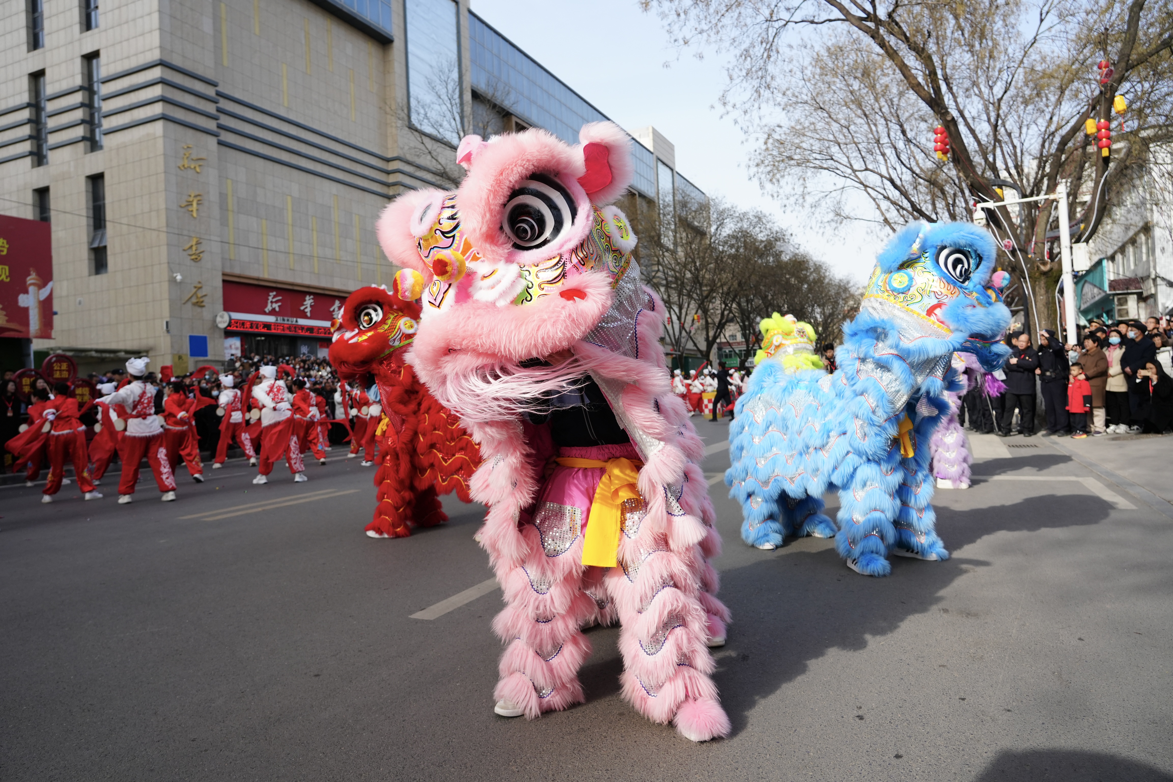 紧随其后的文化方阵,堪称一幅“行走的凤翔文化全景图”,成为游演现场最亮眼的风景,腰鼓队员身着彩衣,步伐矫健、鼓点铿锵,擂响盛世欢歌;秧歌队员舞步轻盈、彩扇翻飞,扭出满心欢喜;威武的雄狮腾跃扑跳、神态威猛,将新春的祝福送到街头巷尾,传统民俗与现代活力完美融合,既是对凤翔千年历史文脉的深情礼赞,也是文旅融合发展的生动实践,让传统文化在新时代绽放出璀璨光彩。