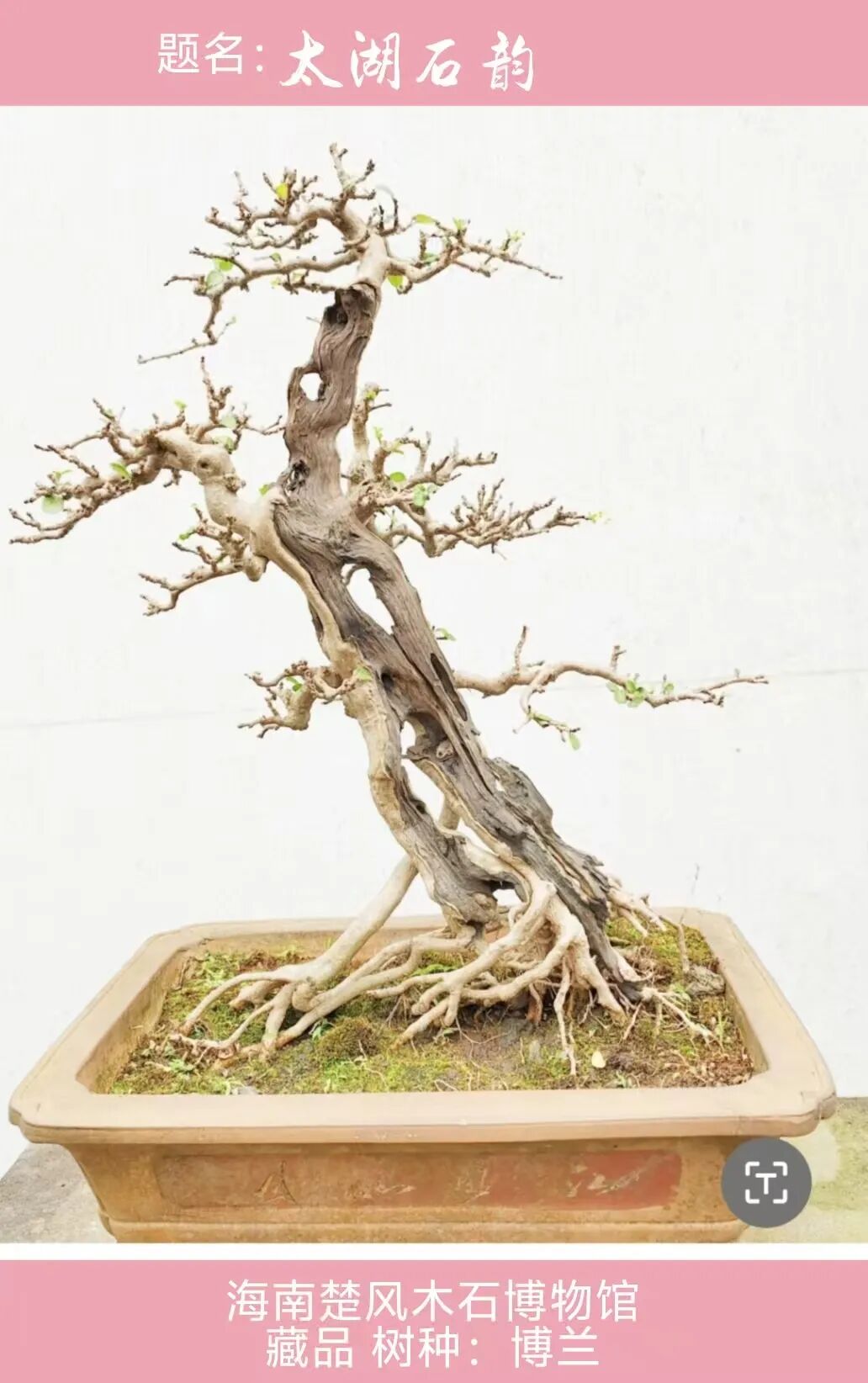 舍利,即枯骨,博兰舍利为岁月留痕,年轻的树不会有舍利。多年前,台湾盆景艺术家郑成功先生莅楚园,对博兰自然舍利大为称赞!
