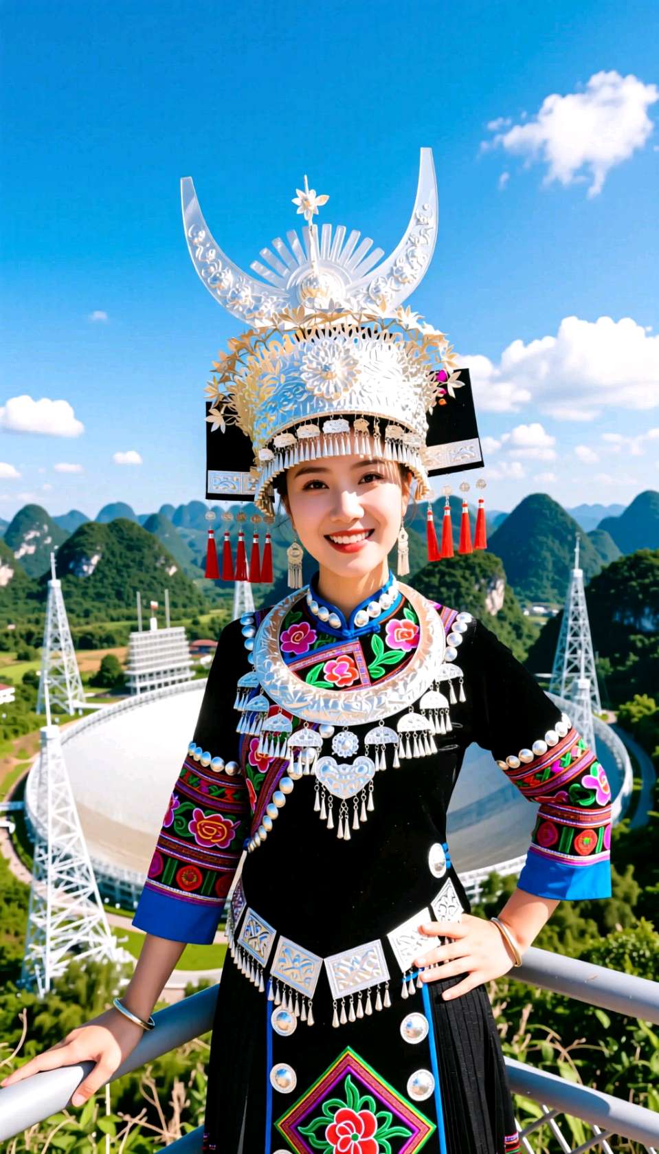 在苗族神话里,传说有一个美丽的女神叫仰阿莎十分迷人,她是美丽与善良的化身,她宛如山涧那溪流清澈见底,灵动又纯净,长期生活在那片神密的领地,无论她走到哪里,都充满了朝气,充满阳光充满激情,更充满了神秘与诗意。当听闻了贵州天眼已经建成,她的后代十分高兴,一个个新生的仰阿莎又诞生在黔东南州那一片天地,由于五谷杂粮的年复一年的供养又显得水灵灵的。