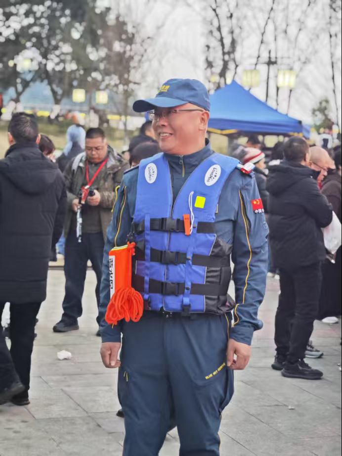 围裙换作救援服,炒勺变成救生绳。2024年9月加入蓝天救援队后,万四哥的人生有了另一重刻度。去年夏天青神遭遇洪灾,他背着八十岁的李婆婆蹚过齐腰深的洪水,救生衣上还沾着火锅底料的油渍;冬夜搜救失联学生时,他把最后半瓶水让给被困者,自己嚼着干面包在寒风口守了个通宵。队友们说他"救援像熬汤"——总能沉下心找到关键处。当被问起为何放下红火生意去冒险,这个讷于言辞的汉子指着队徽:"做生意讲诚信,救人更要讲良心。"
