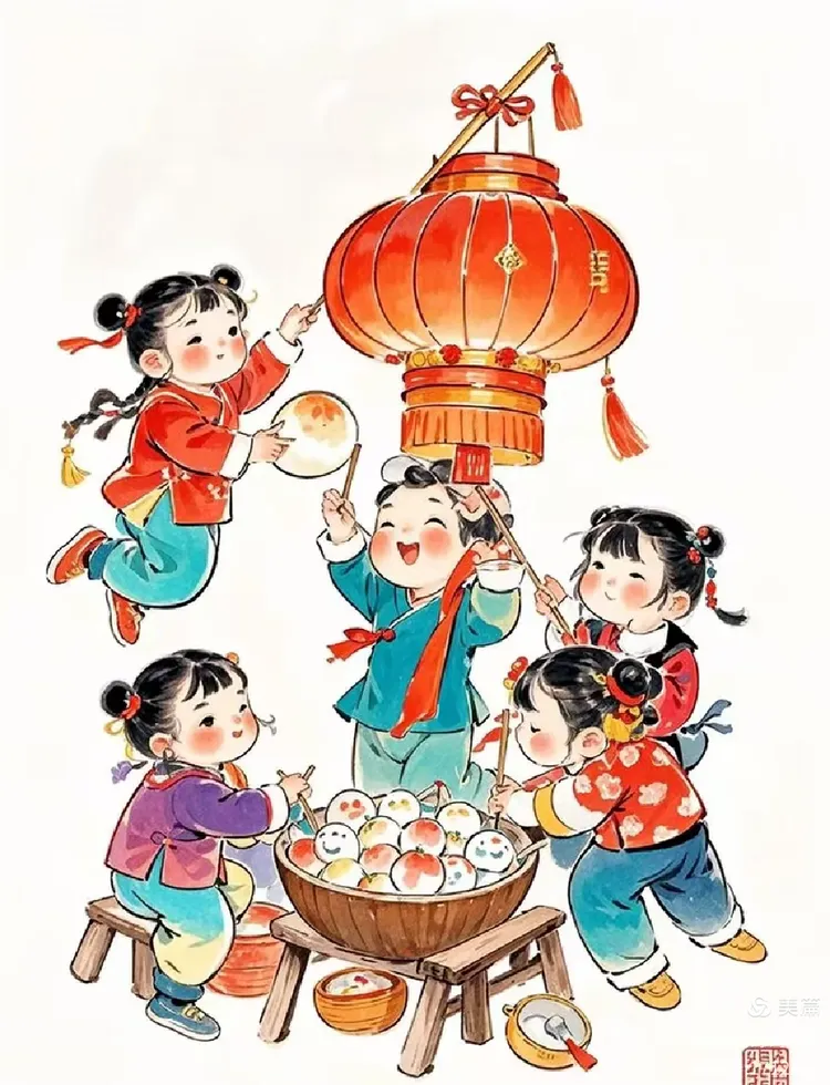 圆团甜糯迎新节,细鼓轻歌上画桥。