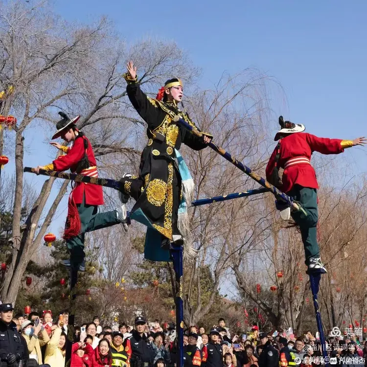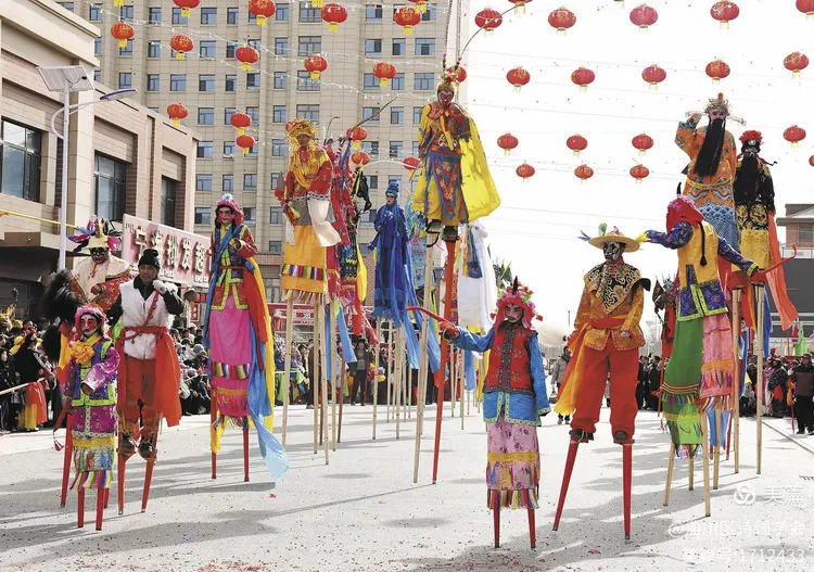 观“齐乐万家·骏马贺春”西河高跷雨中汇演有感(通韵)