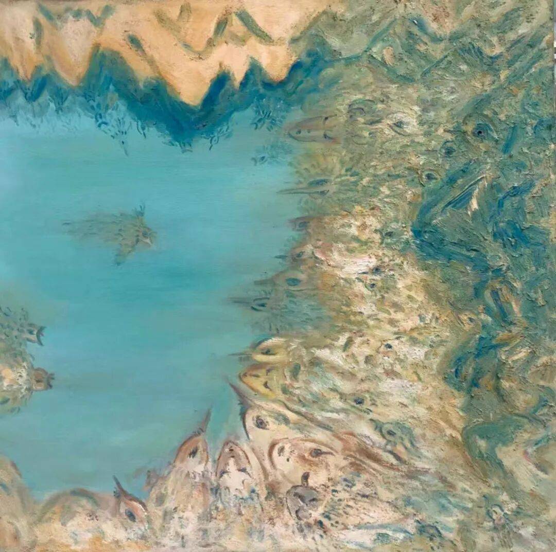 周青的绘画兼有水墨、版画、油画等,体现出她在媒介实践上拥有丰富经验。她的作品在沉静中积蓄力量,并以真诚而内敛的创作理念力求真挚情感,展现独特魅力。其艺术创作根植于东方美学,通过解构与重建传统山水画的视觉符号,赋予自然山水以生命活力与精神征象。她将水墨的灵动气质与油画的厚重质感巧妙结合,创作出具有“表现性”绘画特质的艺术风格,在当代绘画中具有鲜明的可辨识度。例如,《出山》系列作品,以散点透视法重构视觉空间,画中的山峦不再是单纯的自然物象,而是承载千年文人情怀的载体。色彩与线条的交织碰撞,不仅拓展了油画的表现力,更隐喻人与自然的同存共生关系。《逍遥游》系列作品,以水墨写意技法融合文人精神修行的元素,神话灵兽的遐想与恒久时空并置转化,营造出超脱现实的异化现象。使古典文化在当代语境中焕发新机,以探索生命本真与艺术真谛的关系。